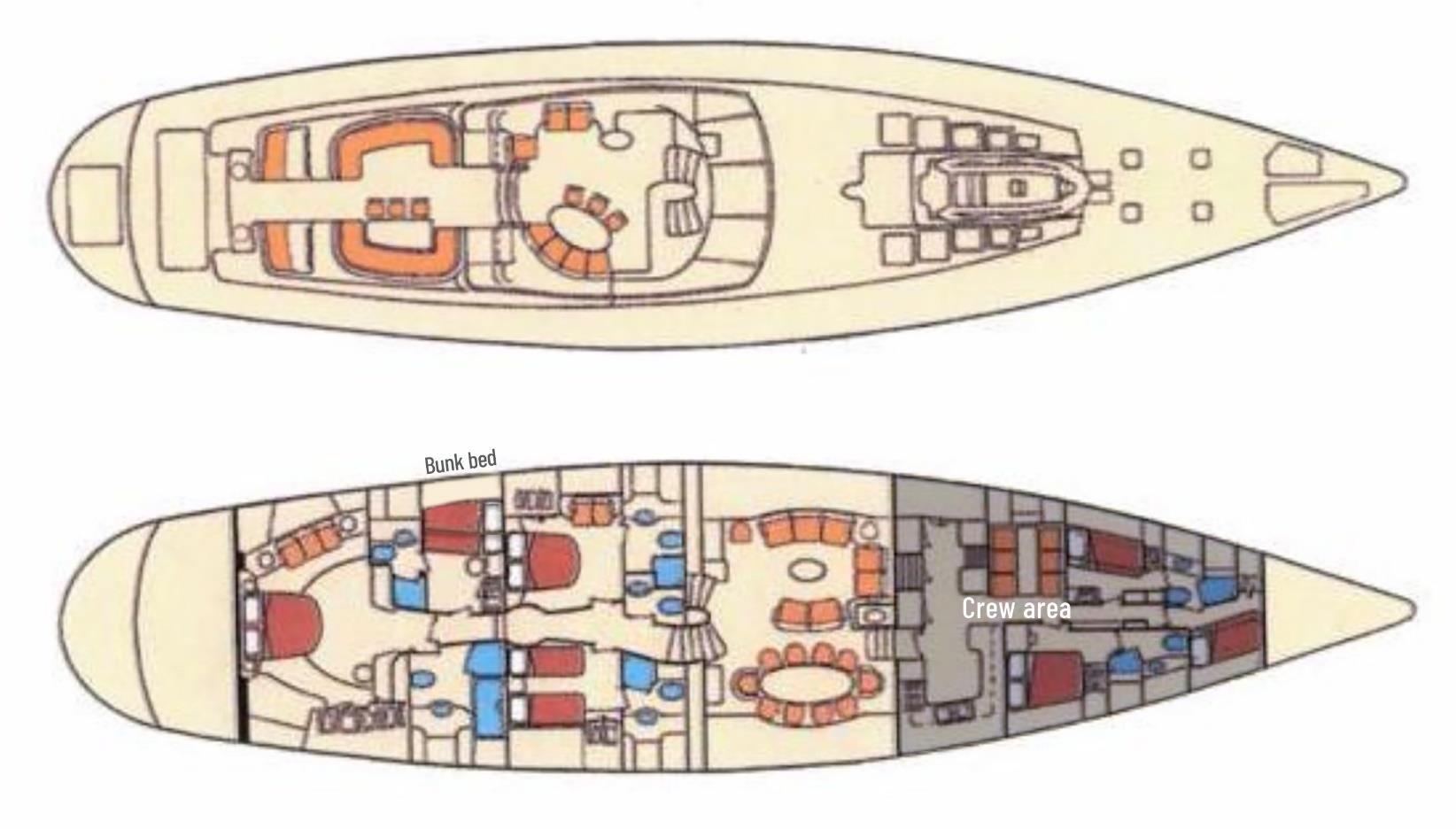 For up to 8 guests in 4 cabins and 6 crew in 3 cabins