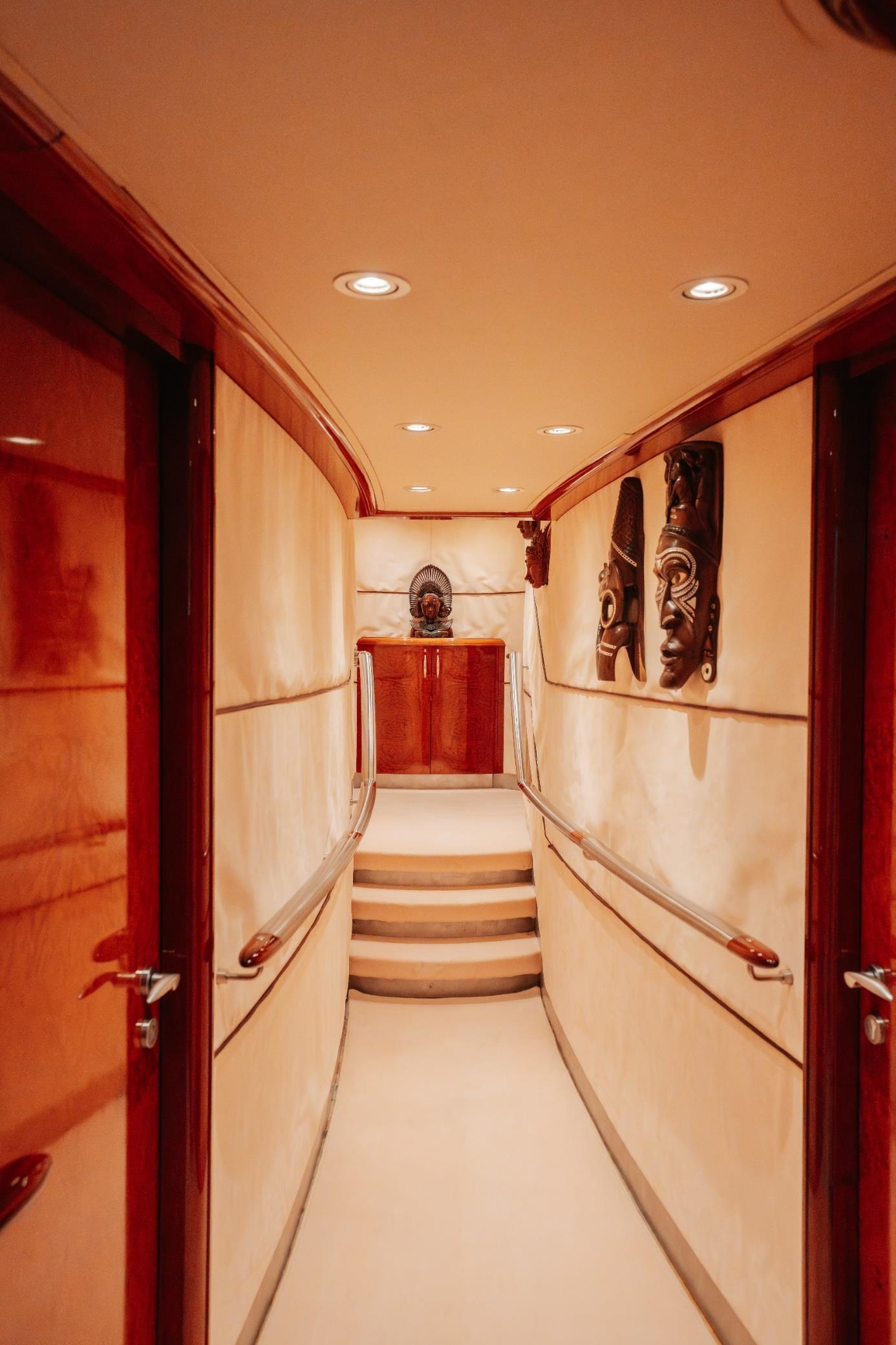 In front of the saloon and dining room, spacious, well-fitted, and equipped. Proper crew mess in front of the port side galley