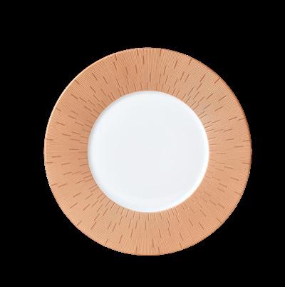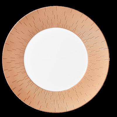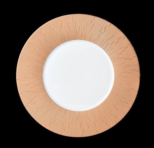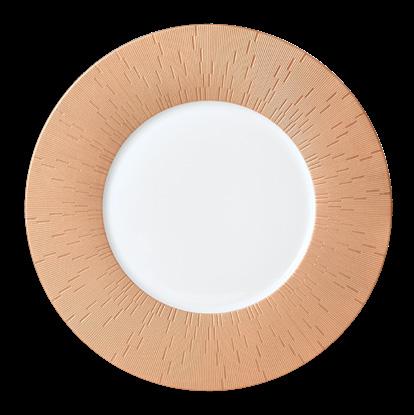 Collection emblématique de la Maison Haviland, Infini se distingue par sa gravure en creux délicatement ciselée. Le motif est solaire, les rayons se perdent à l’infini, tandis que des étincelles donnent rythme et vivacité à l’ensemble. Une teinte cuivre profonde habille l’ensemble avec intensité, offrant un éclat chaleureux et contemporain.