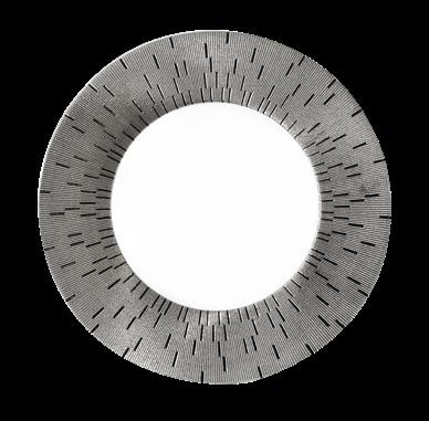Collection emblématique de la Maison Haviland, Infini Blanc se distingue par sa gravure en creux délicatement ciselée, mise en exergue par un jeu d’émail mat et brillant. Le motif est solaire, les rayons se perdent à l’infini, tandis que des étincelles donnent rythme et vivacité à l’ensemble. Le raffinement et l’élégance de cette forme l’inscrivent pleinement dans la tradition de ses créations.