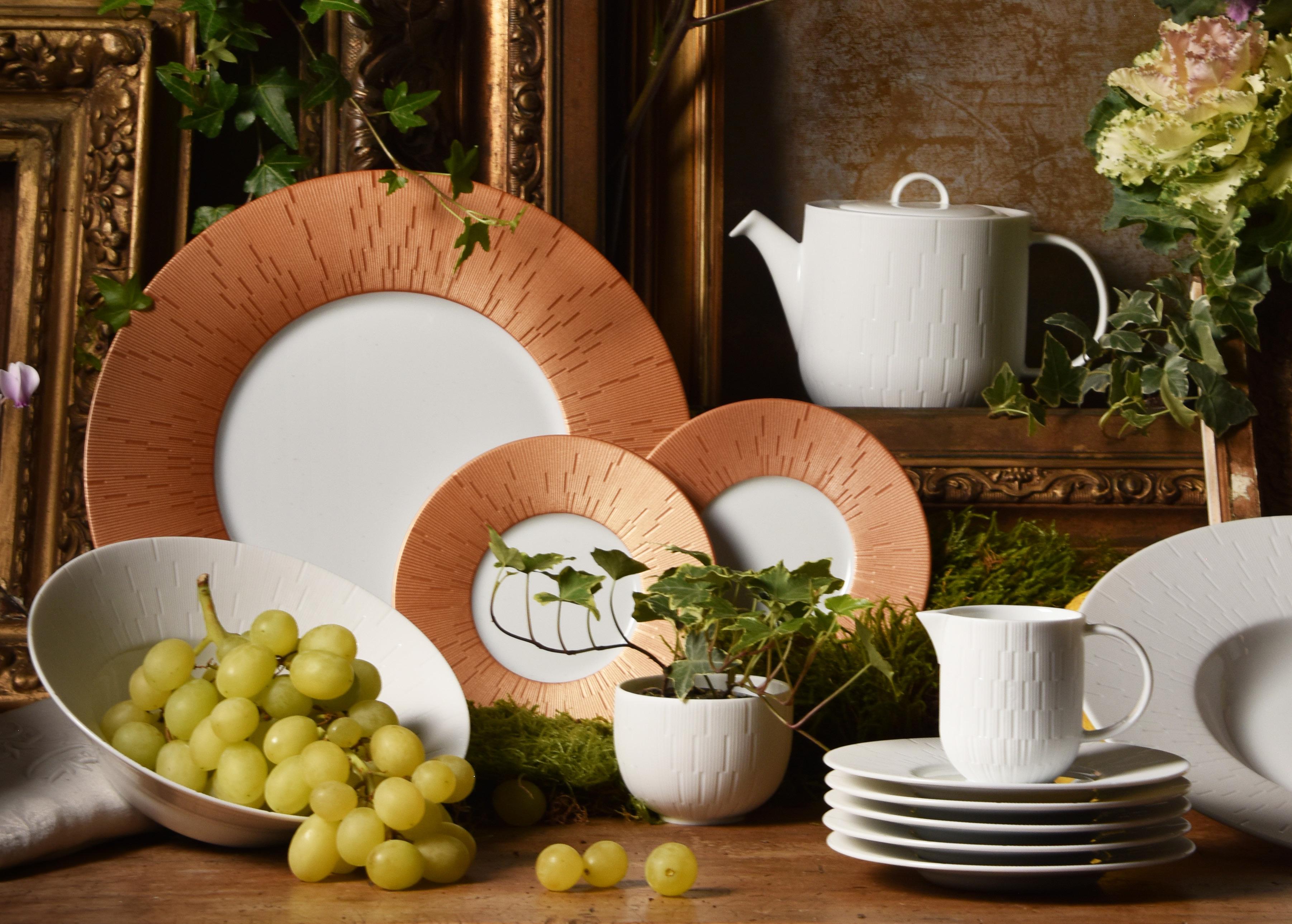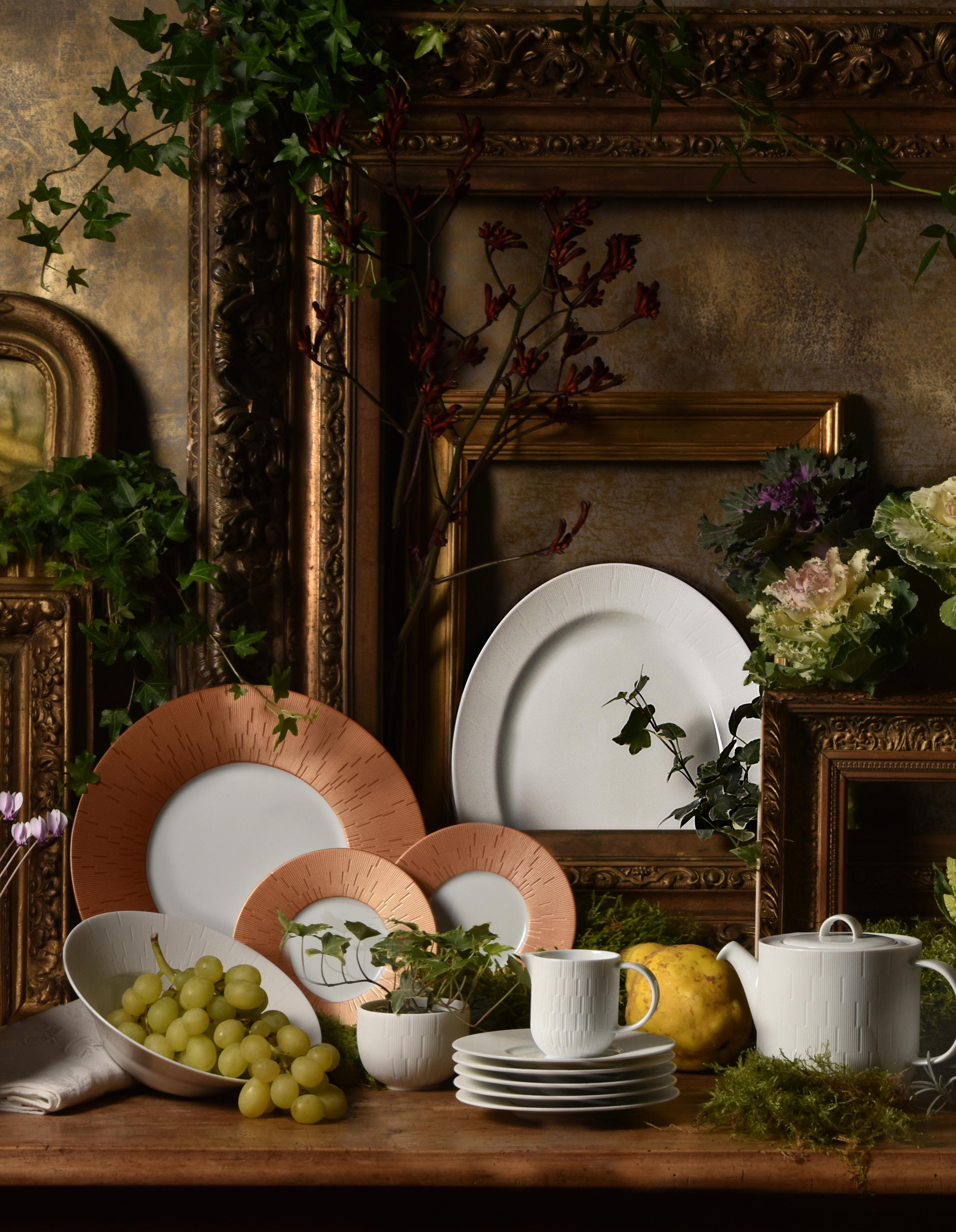 An iconic collection from Maison Haviland, Infini stands out with its delicately engraved hollow pattern. The sun-inspired design features rays that seem to stretch out forever, while small sparkles add movement and energy. A rich copper tone envelops each piece with intensity, creating a warm and contemporary glow.