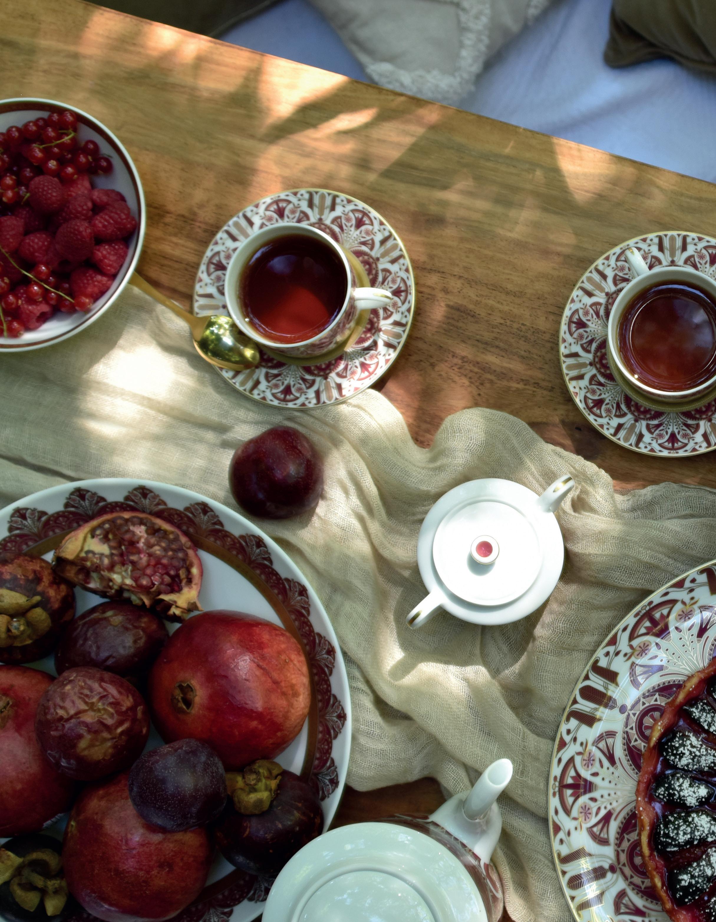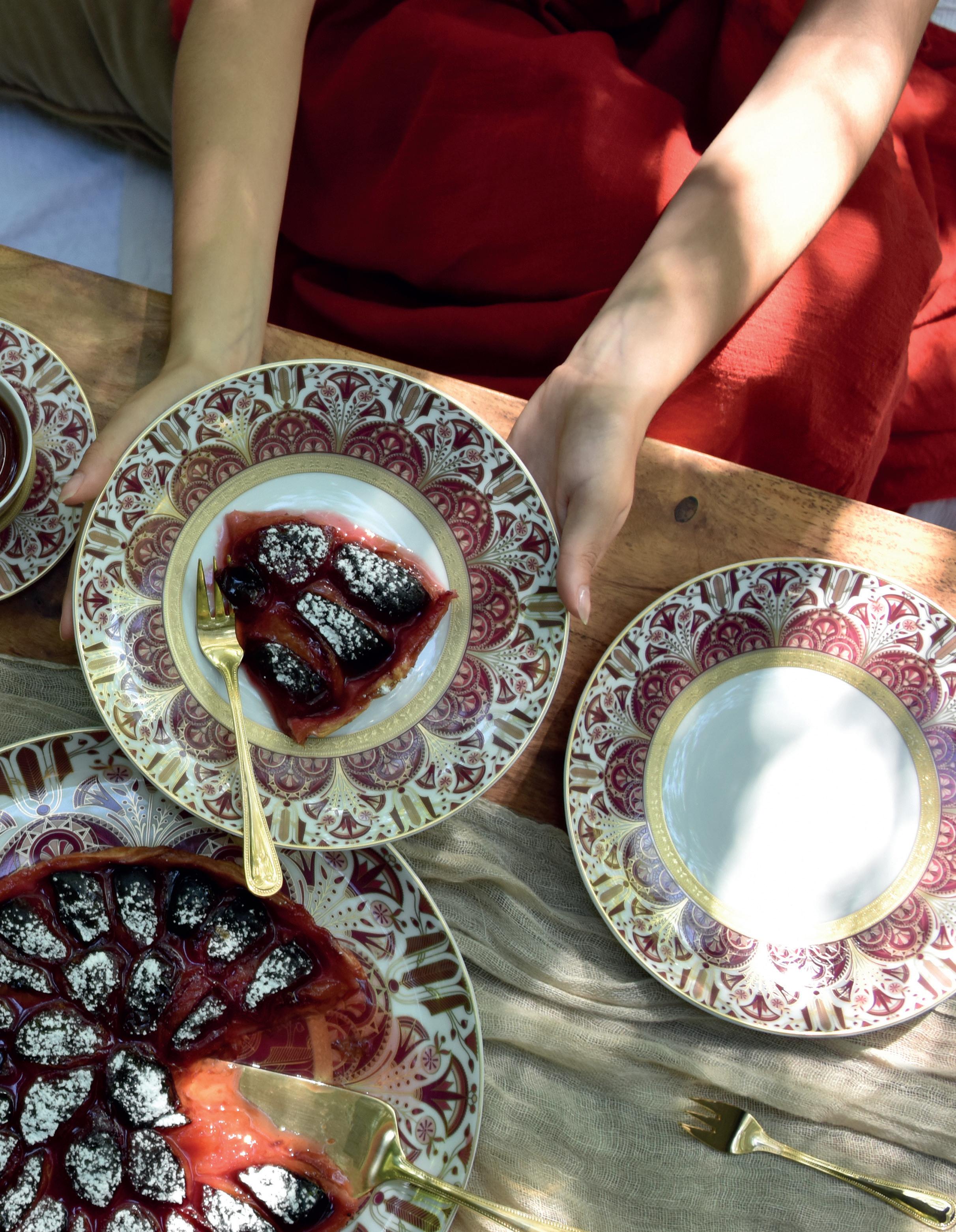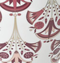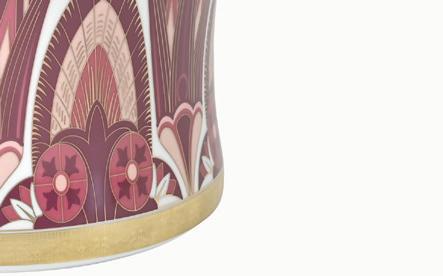 La collection Rêves du Nil Pourpre se pare de nouvelles teintes évocatrices de la grandeur et de la richesse de l'Égypte antique, réhaussées de touches d'or appliquées à la main. Au soleil couchant, papyrus, palmes et chapiteaux se colorent de rouges et de roses soulignés d’une frise en or relief, telle une ligne ciselée sur l’horizon. Rêves du Nil Pourpre est une invitation au voyage sur les traces d'une civilisation légendaire.