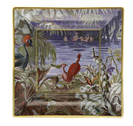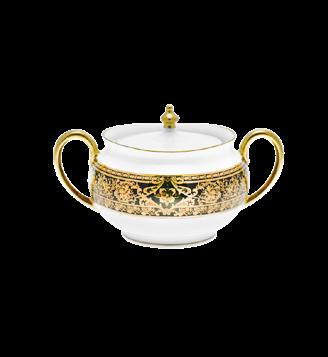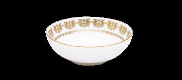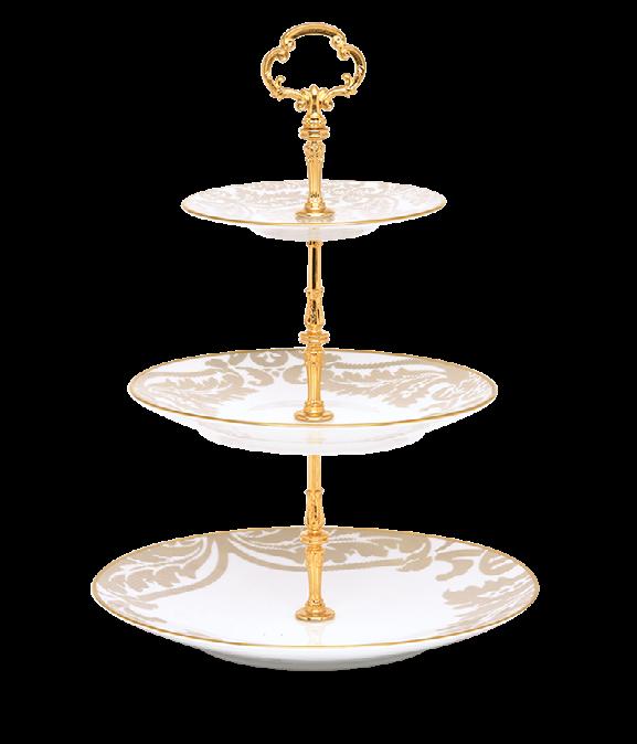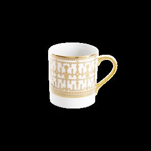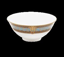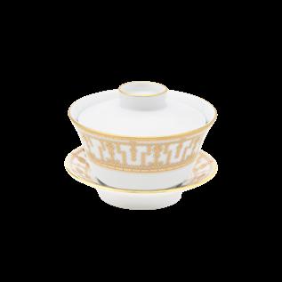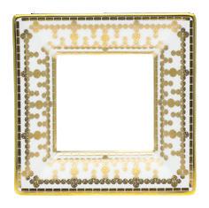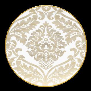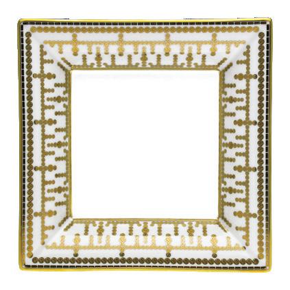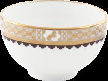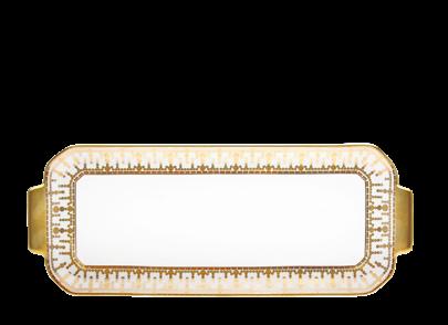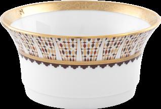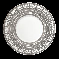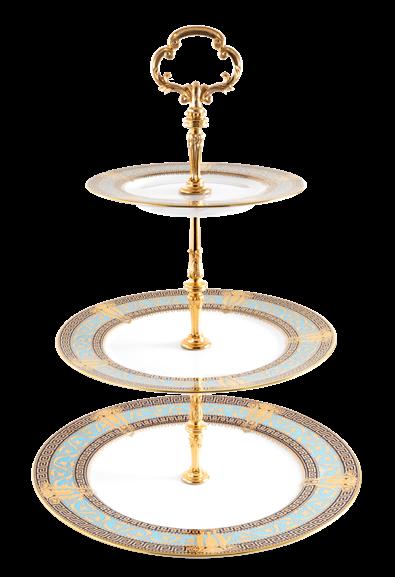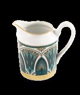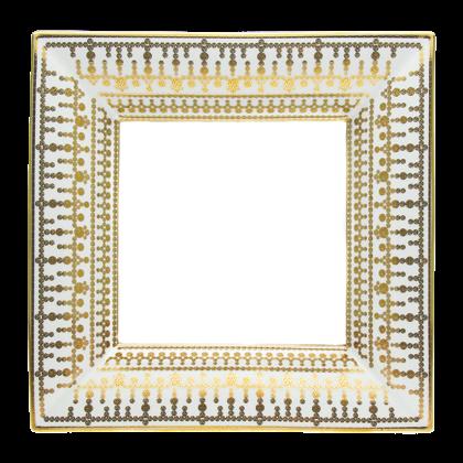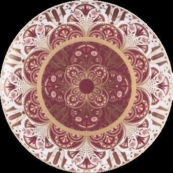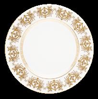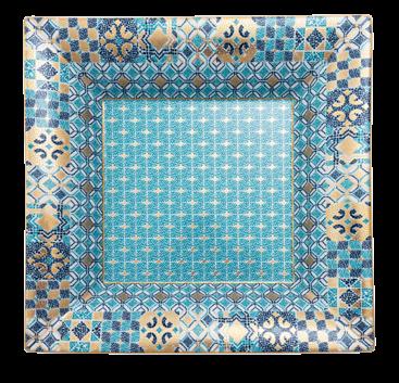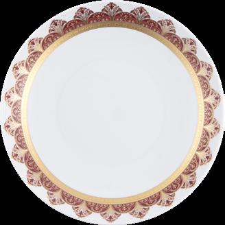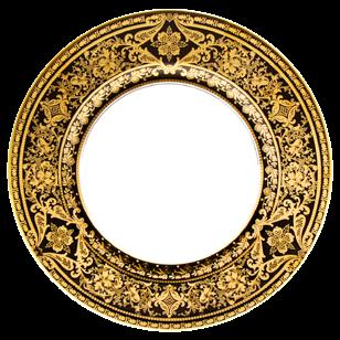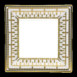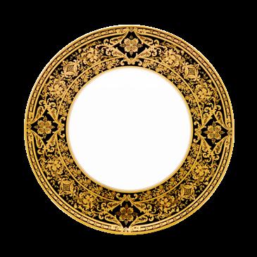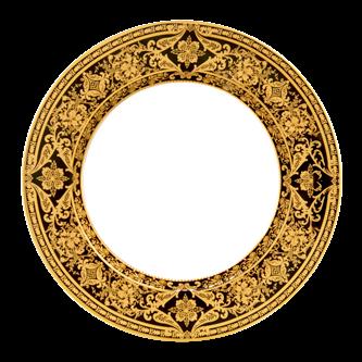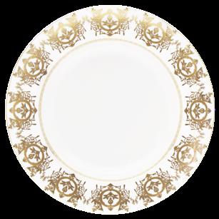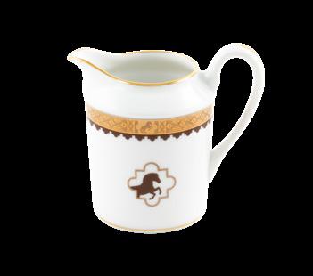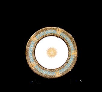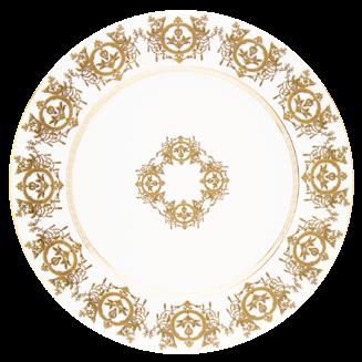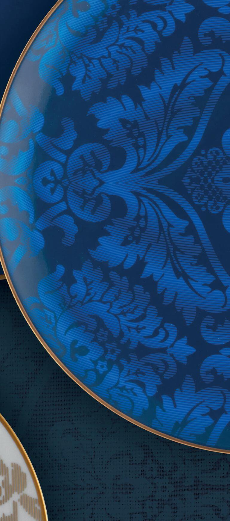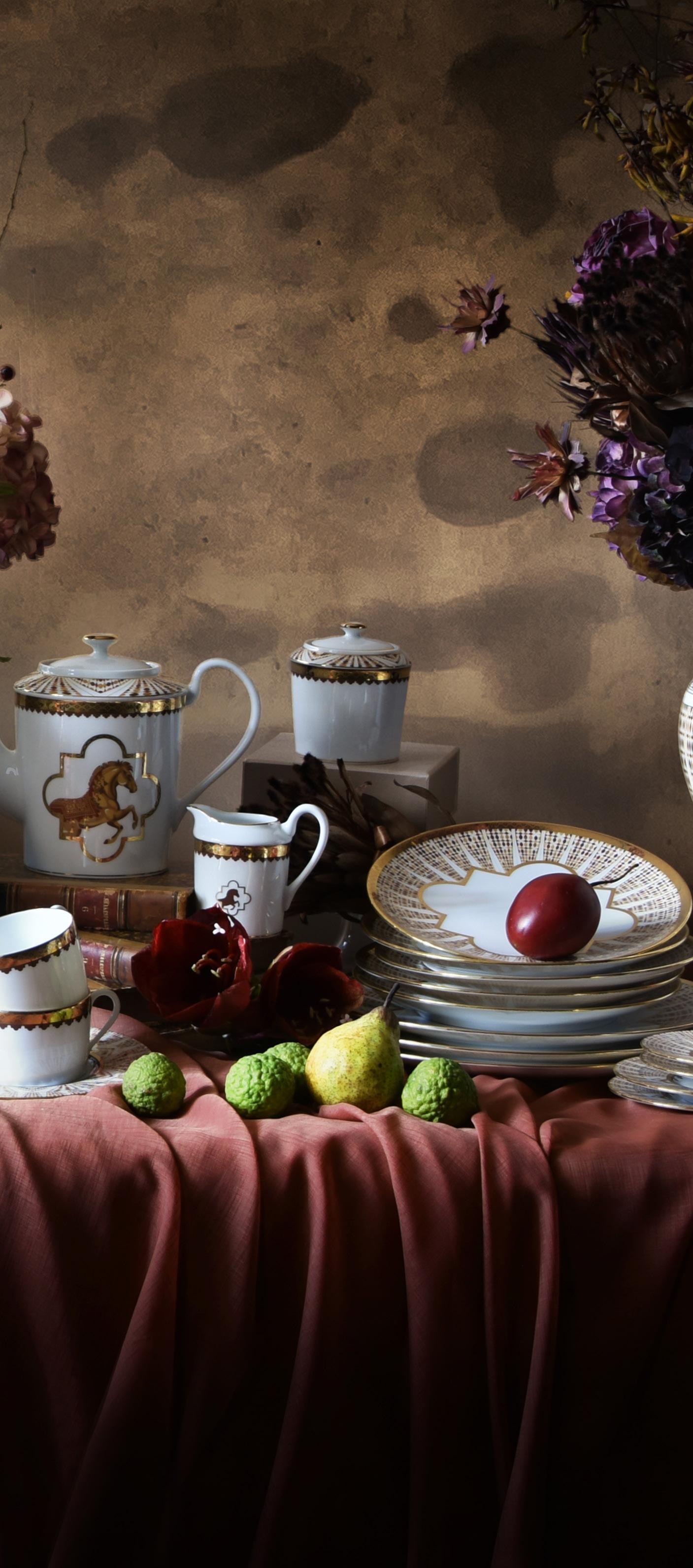 La collection Cavalier Royal rend hommage à la noblesse et la grâce du cheval andalou, longtemps appelé le cheval des rois en raison de son utilisation par les nobles européens. Il est mis en lumière sur l’assiette de présentation et l’assiette à pain dans un cartouche quadrilobé qui évoque le palais de l’Alcazar à Séville. Les différents motifs architecturaux ainsi que les couleurs du décor incarnent cette fusion entre orient et occident, si caractéristique du sud de la péninsule ibérique.