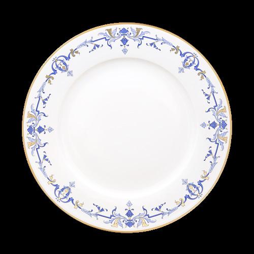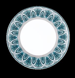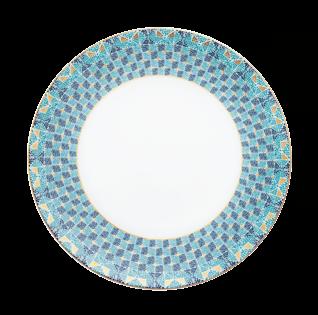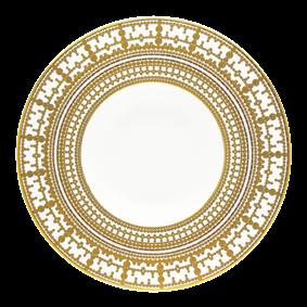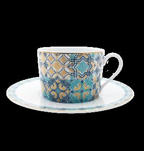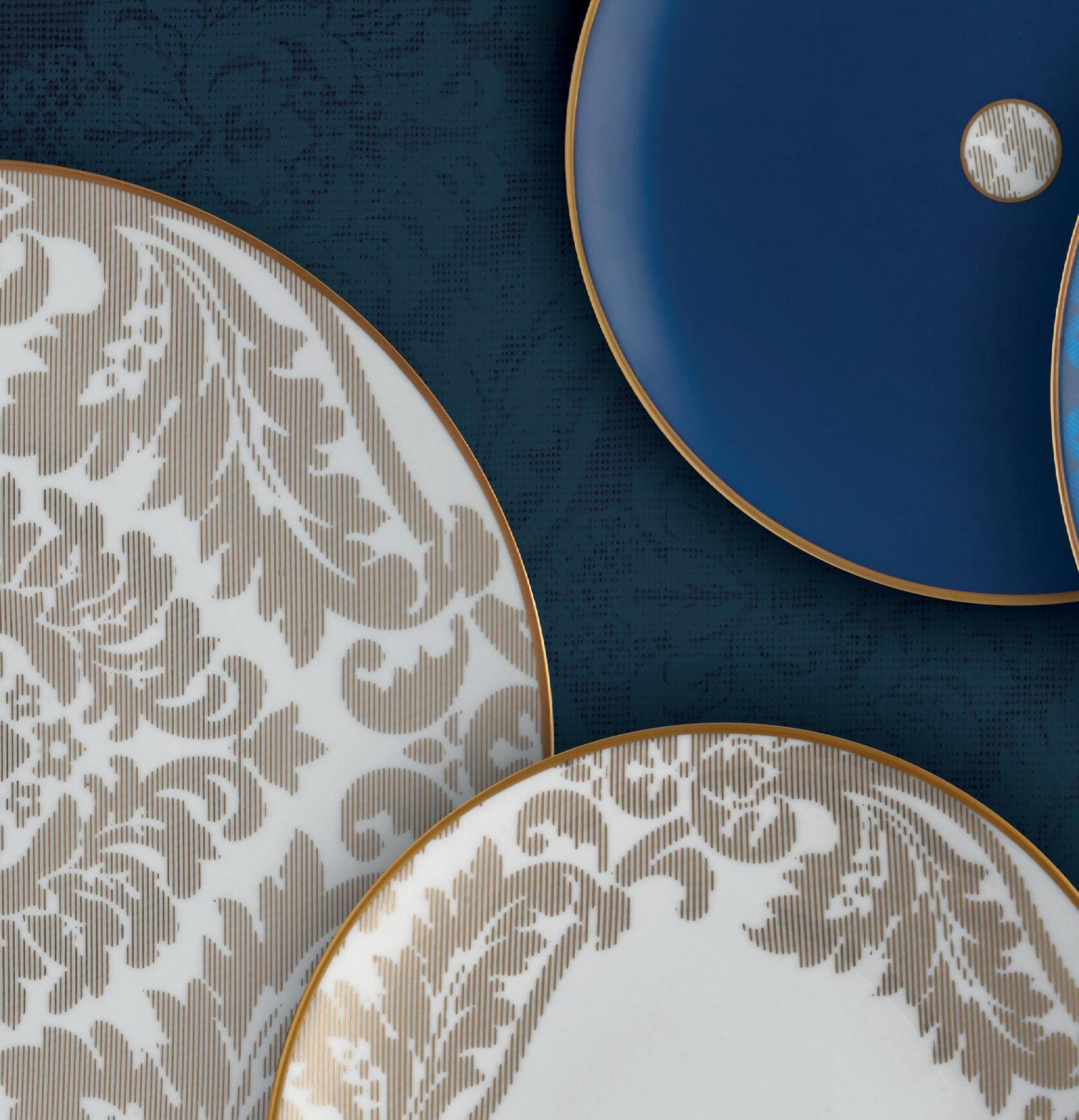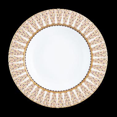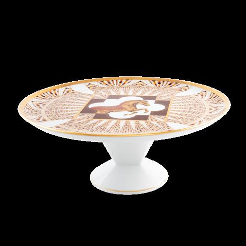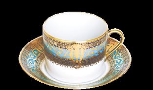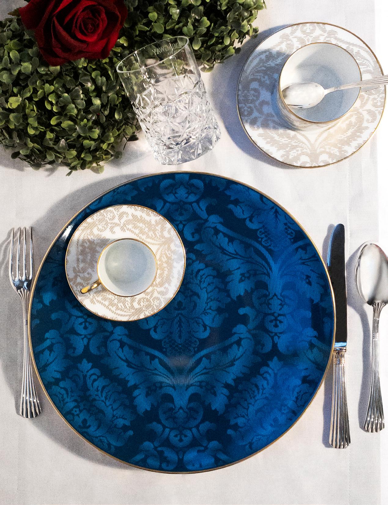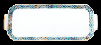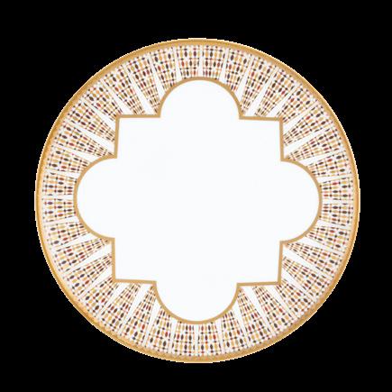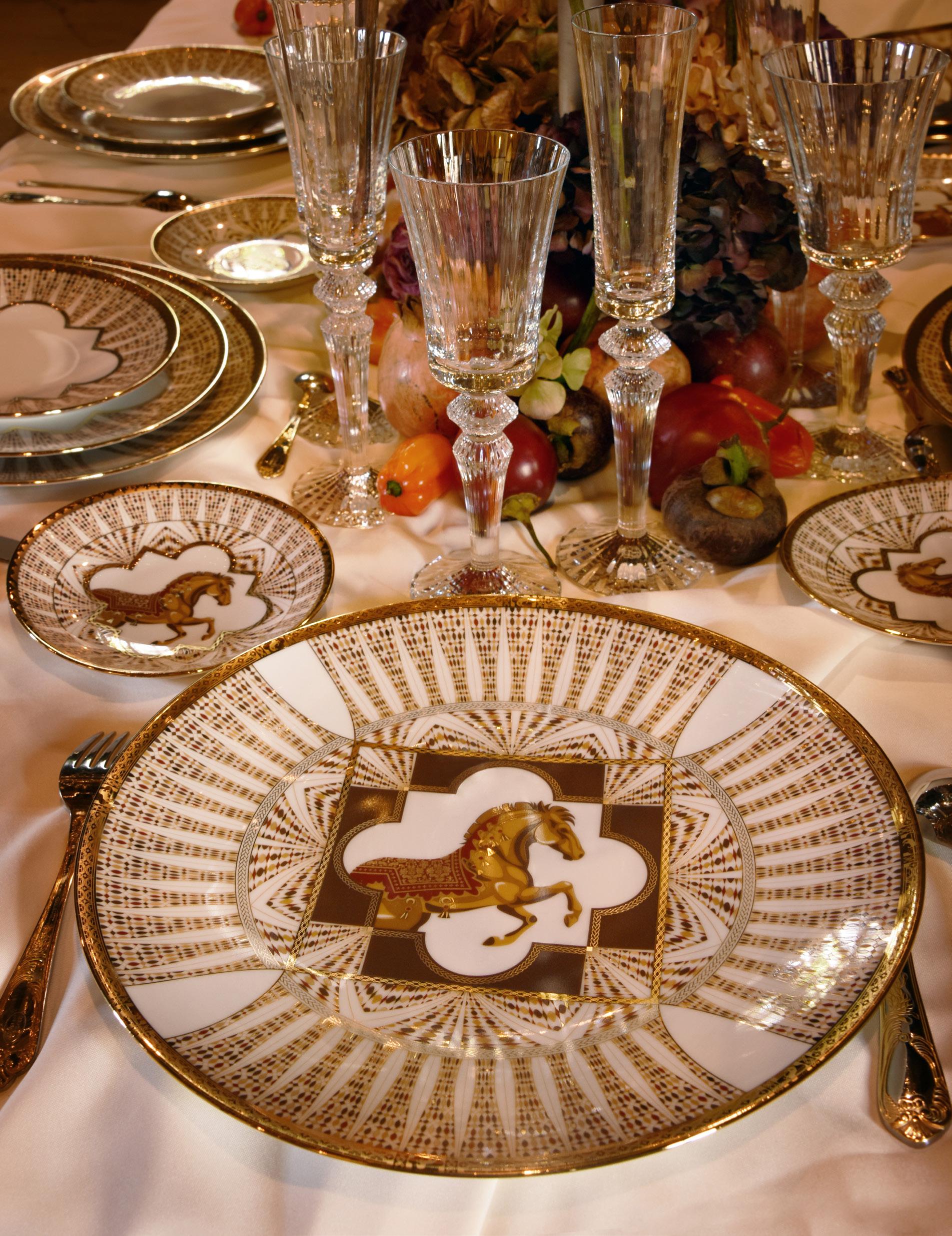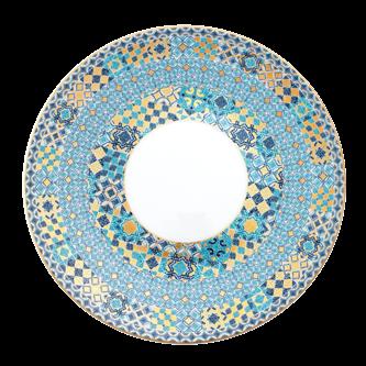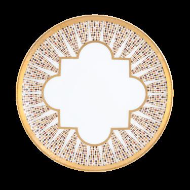 The Cavalier Royal collection pays tribute to the nobility and grace of the Andalusian horse, renowned as the horse of kings beloved by European aristocracy. It is featured on the presentation and bread and butter plate in a quadrilobed cartouche that evokes the Alcázar Palace in Seville. The various architectural patterns and the colors of the decoration embody this fusion of East and West, distinctly characteristic of the southern Iberian Peninsula.