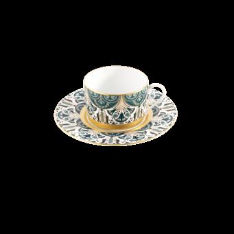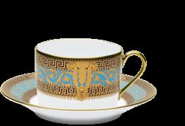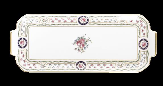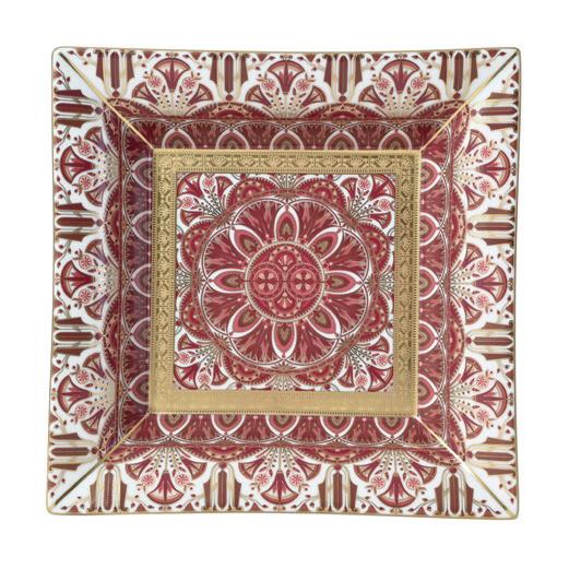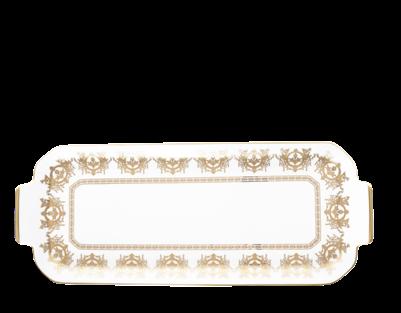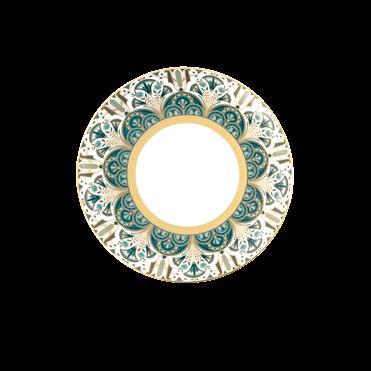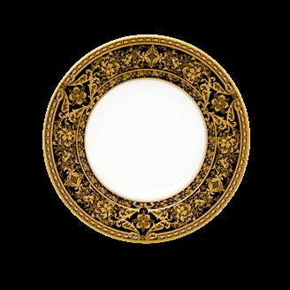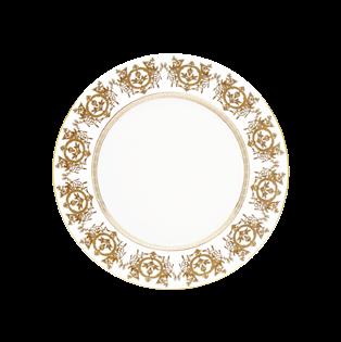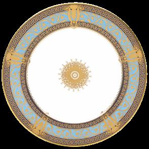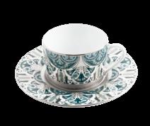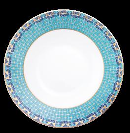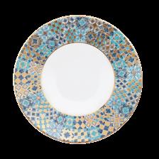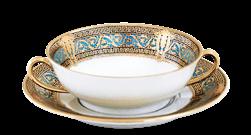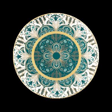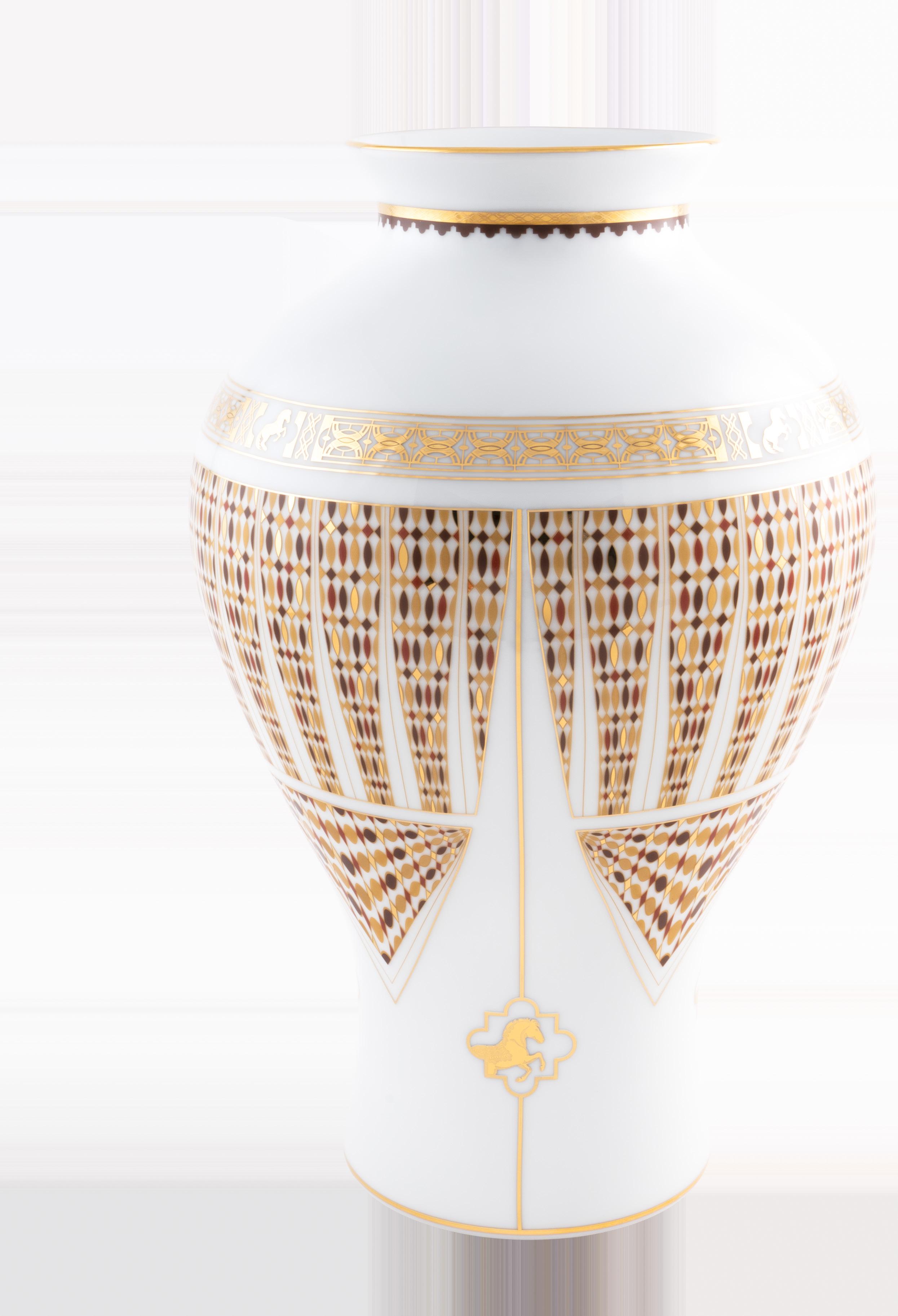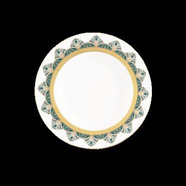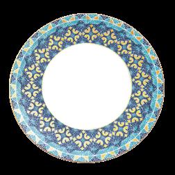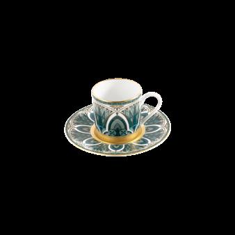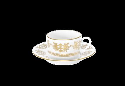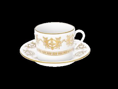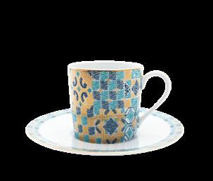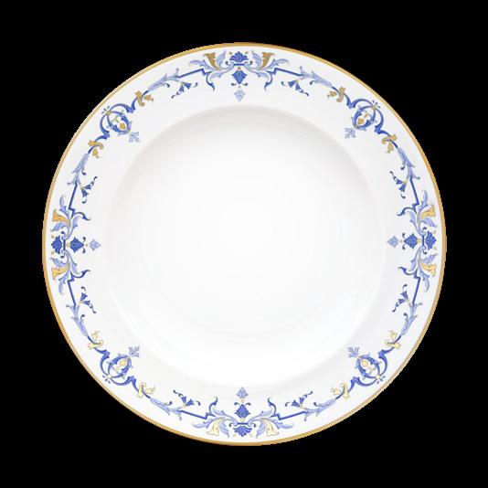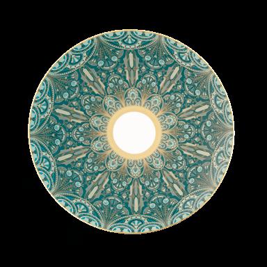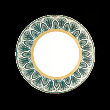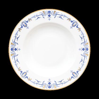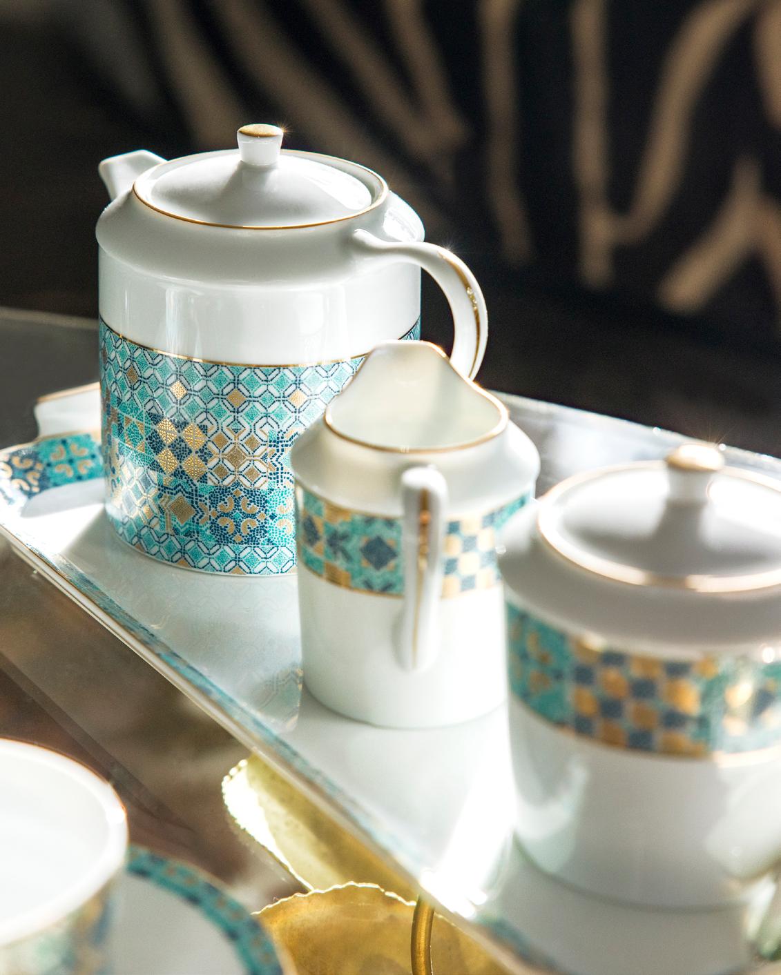 The Cavalier Royal collection pays tribute to the nobility and grace of the Andalusian horse, renowned as the horse of kings beloved by European aristocracy. It is featured on the presentation and bread and butter plate in a quadrilobed cartouche that evokes the Alcázar Palace in Seville. The various architectural patterns and the colors of the decoration embody this fusion of East and West, distinctly characteristic of the southern Iberian Peninsula.