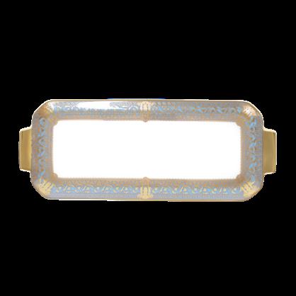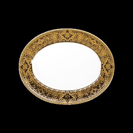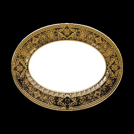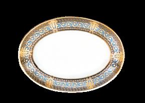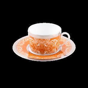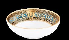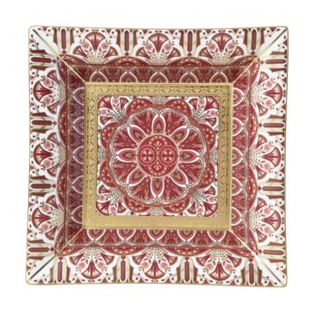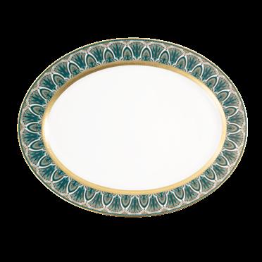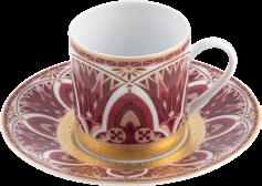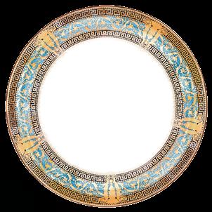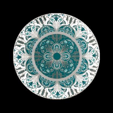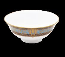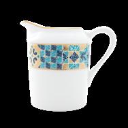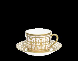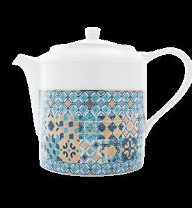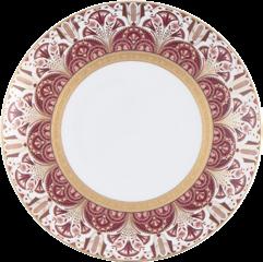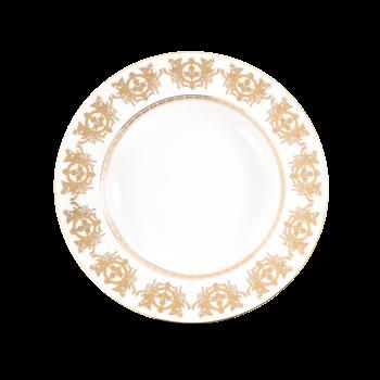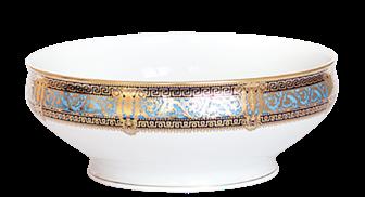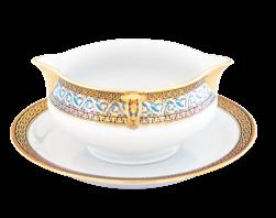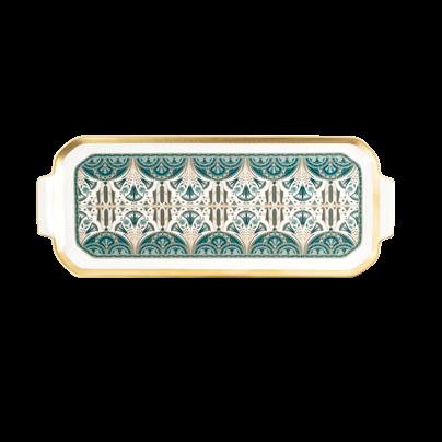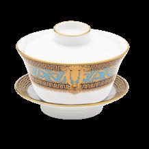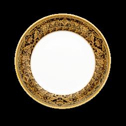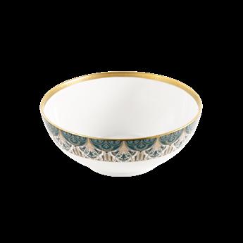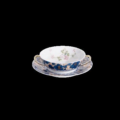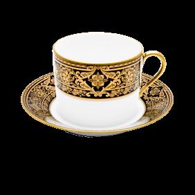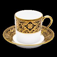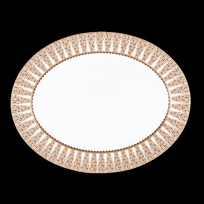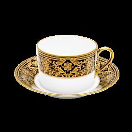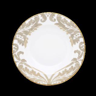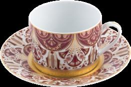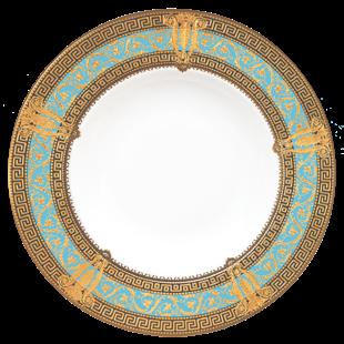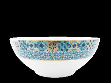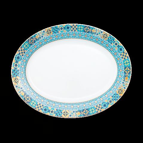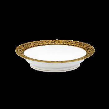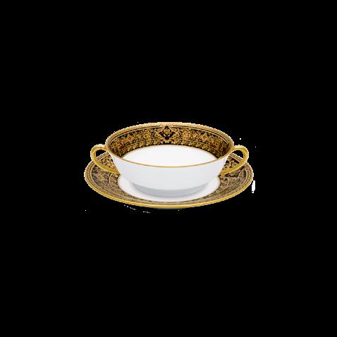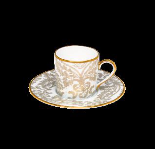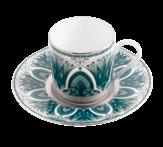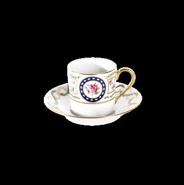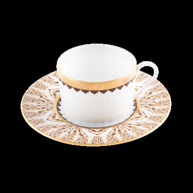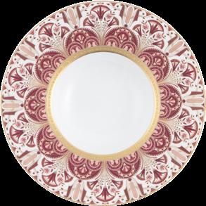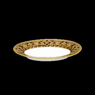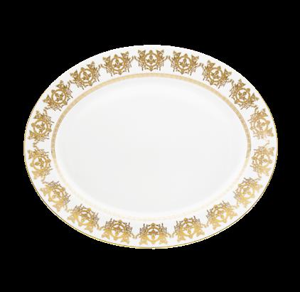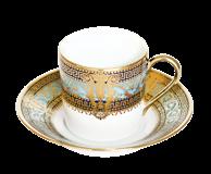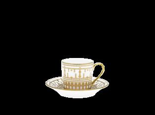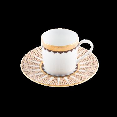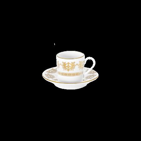 The Cavalier Royal collection pays tribute to the nobility and grace of the Andalusian horse, renowned as the horse of kings beloved by European aristocracy. It is featured on the presentation and bread and butter plate in a quadrilobed cartouche that evokes the Alcázar Palace in Seville. The various architectural patterns and the colors of the decoration embody this fusion of East and West, distinctly characteristic of the southern Iberian Peninsula.
