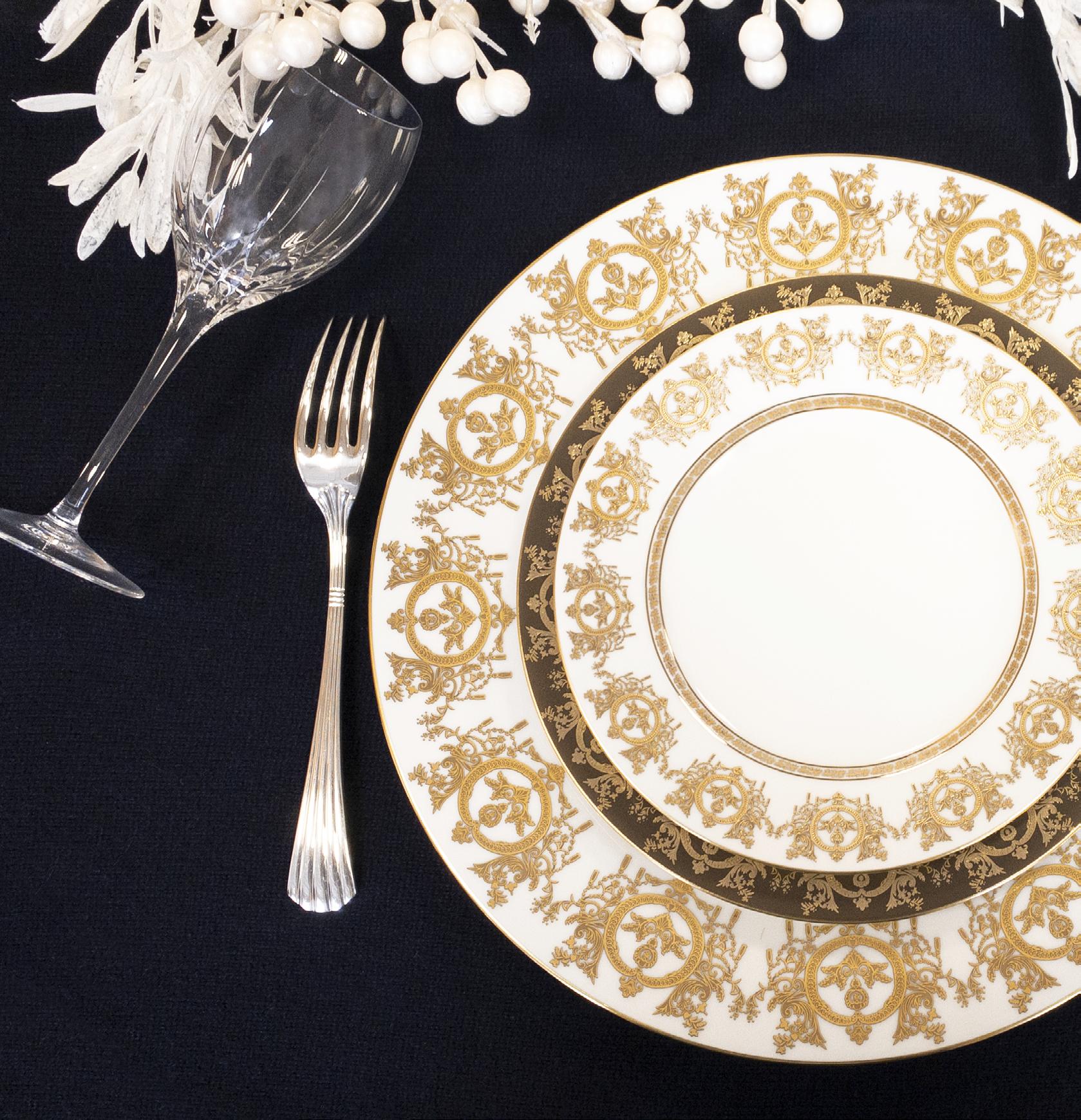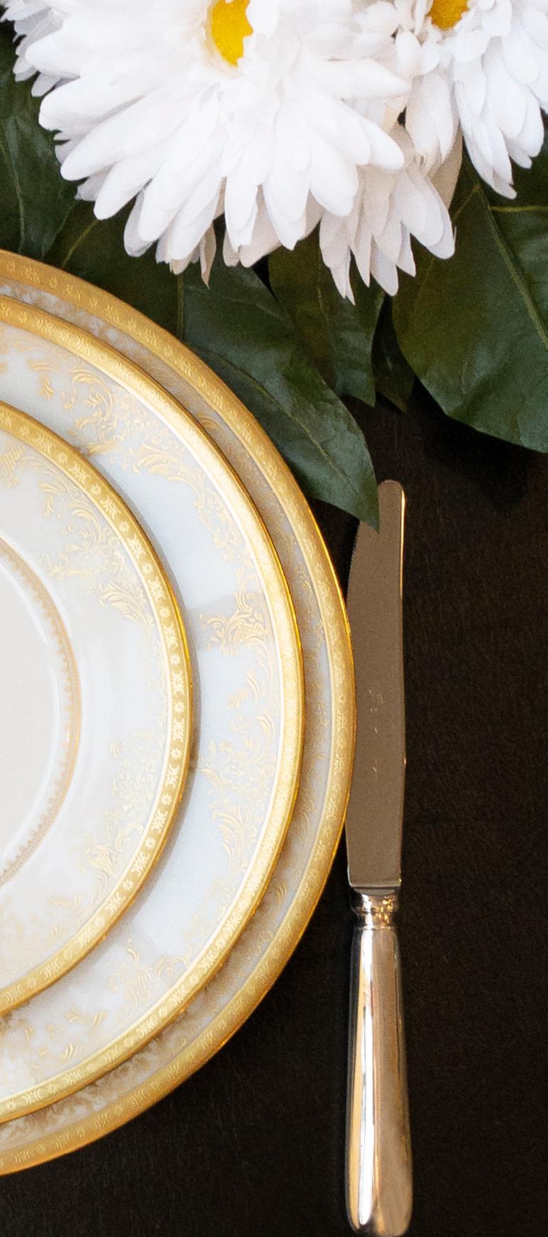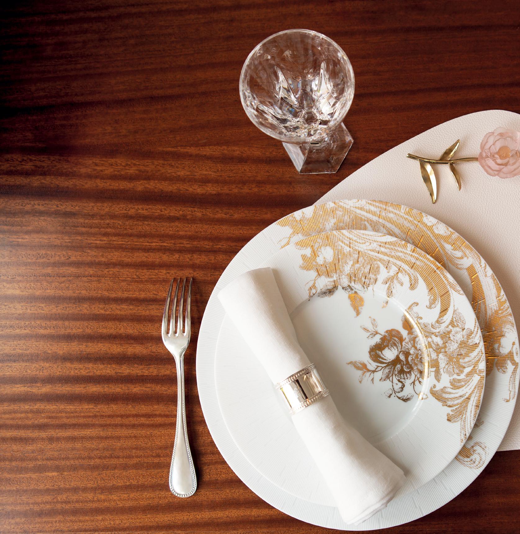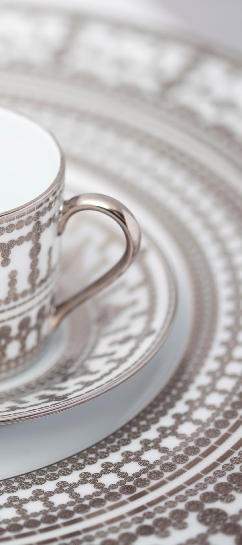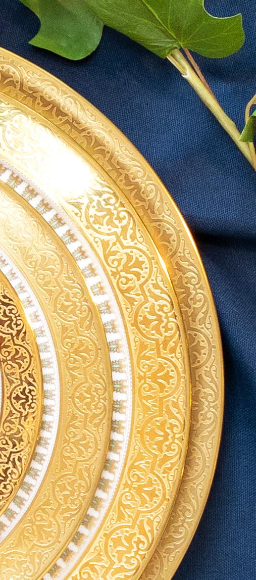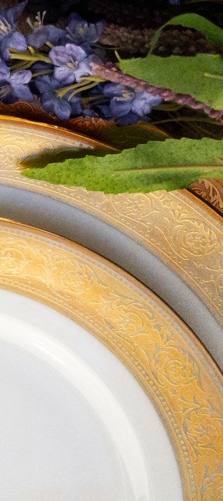 If your gold or platinum decorated service is not used regularly or if it is stored in a damp room, the gold or platinum may tarnish. The metal may also develop a patina from being rubbed by cutlery. In this case, simply polish it with a soft cloth and a few drops of a solution used for silverware maintenance. Afterwards, there is nothing better than frequent use to keep it looking its best!