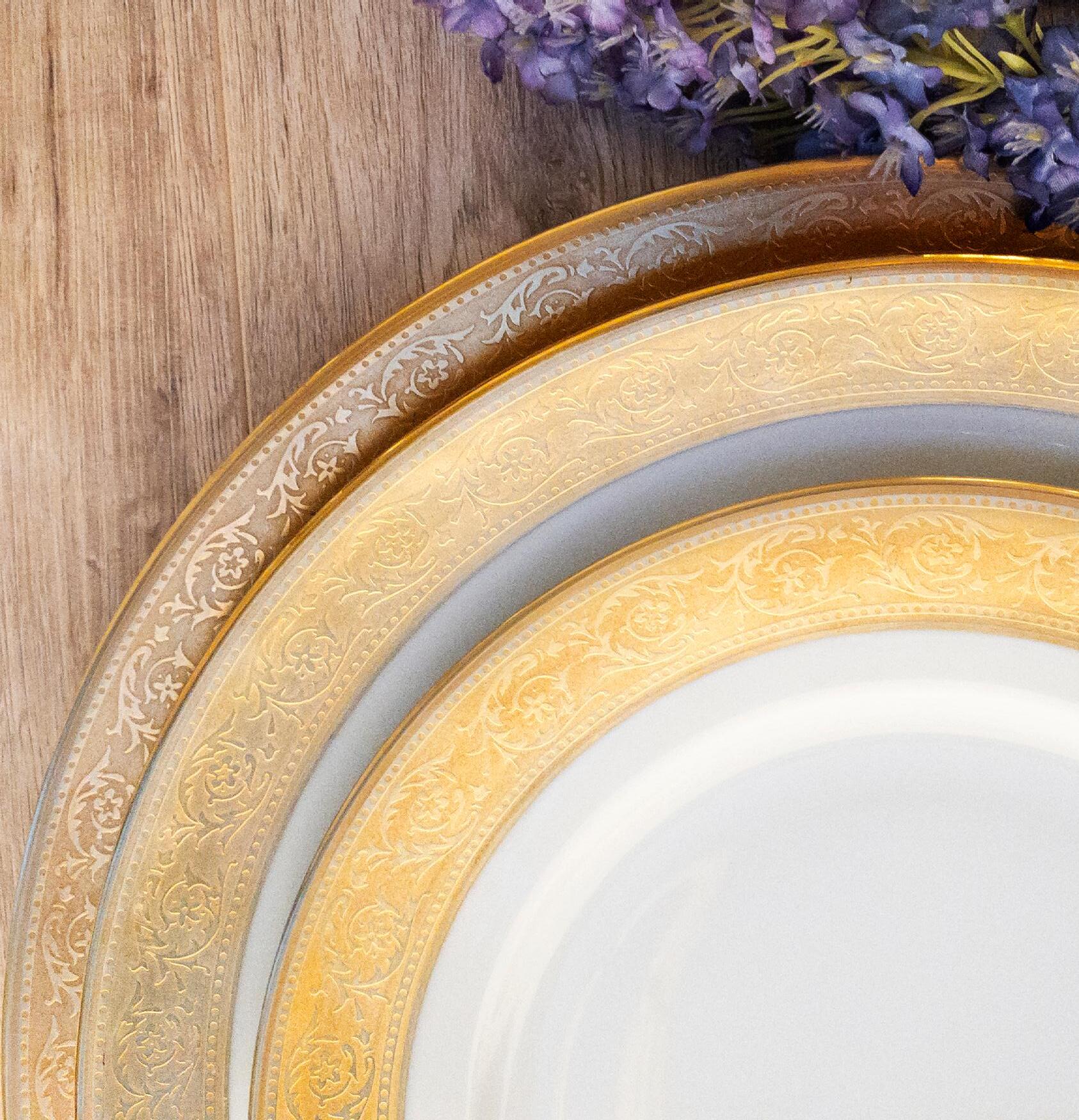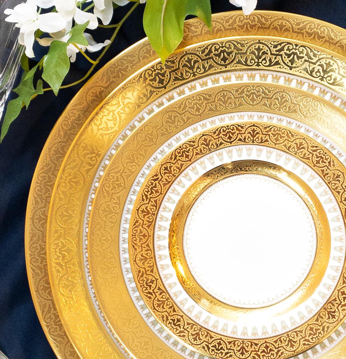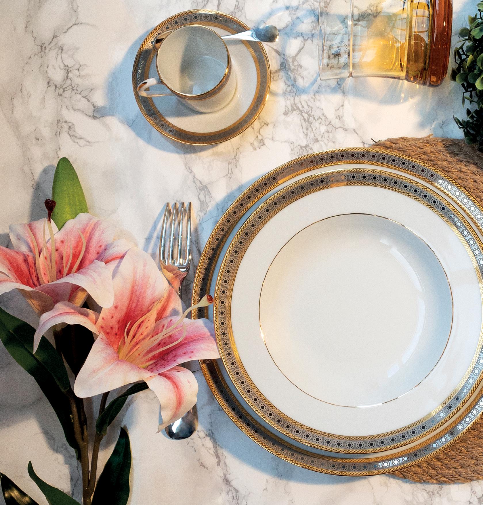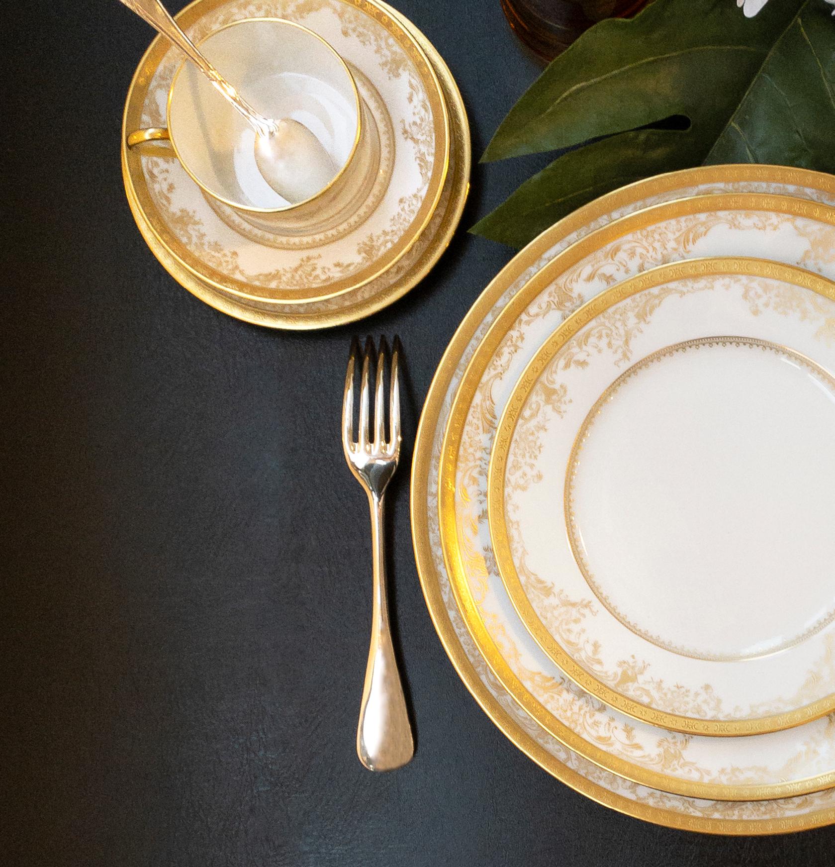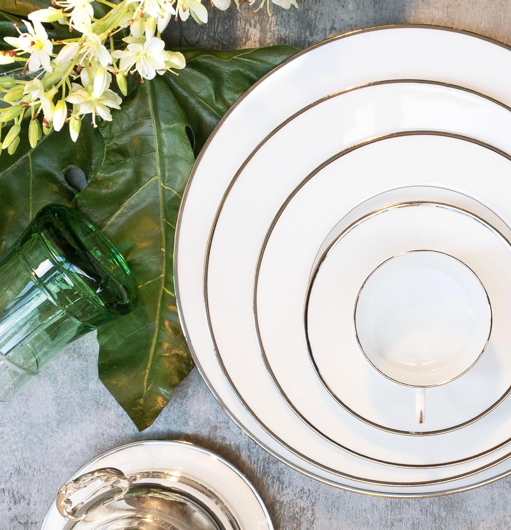 If your gold or platinum decorated service is not used regularly or if it is stored in a damp room, the gold or platinum may tarnish. The metal may also develop a patina from being rubbed by cutlery. In this case, simply polish it with a soft cloth and a few drops of a solution used for silverware maintenance. Afterwards, there is nothing better than frequent use to keep it looking its best!