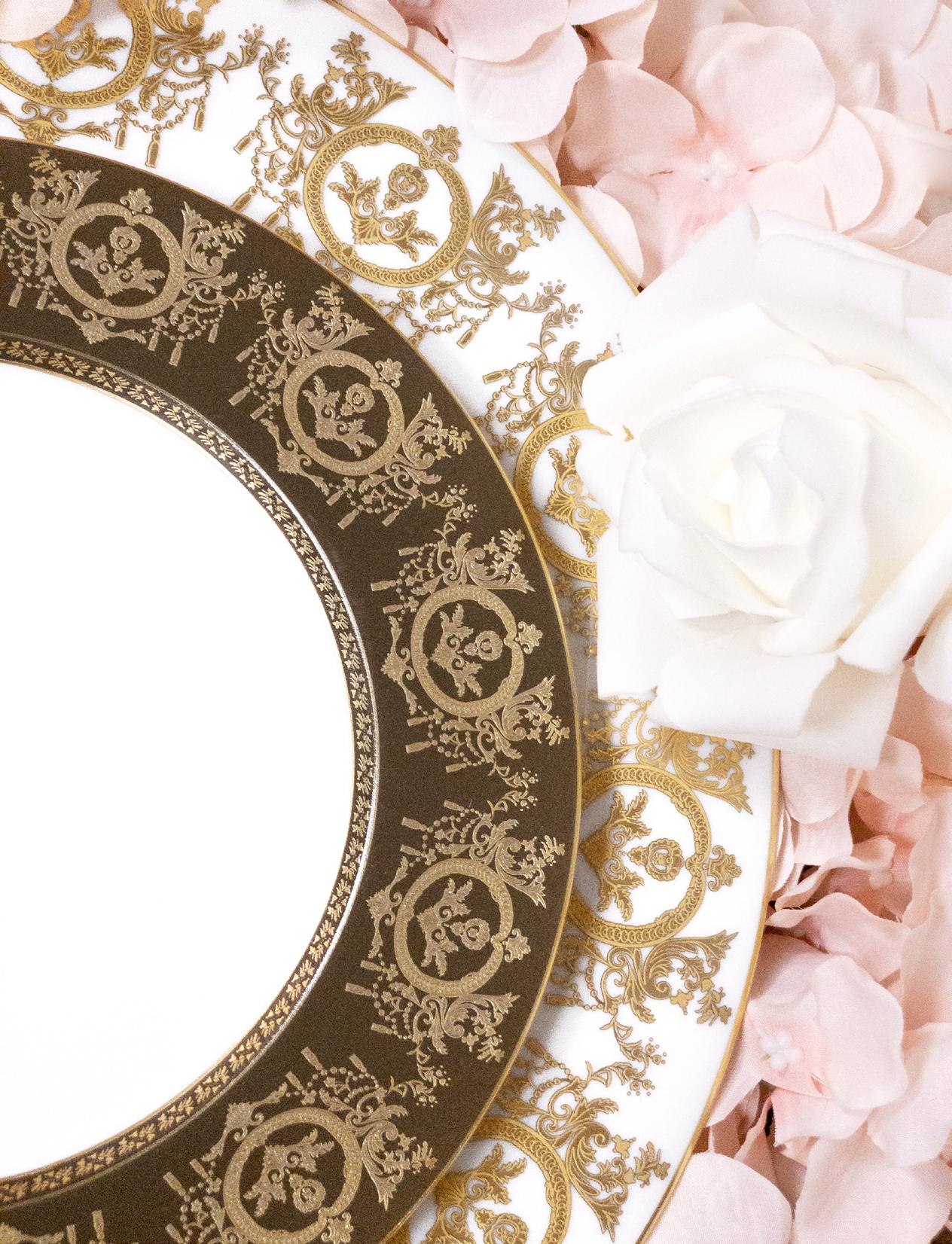If you choose to hand-wash your porcelain service, make sure to use a soft sponge and regular dishwashing liquid. Be careful not to use the abrasive side of the sponge, which can scratch or damage the surface of the decorations, especially gold and platinum. However, we recommend that you use a dishwasher, taking care to choose a low-temperature program and not to exceed the recommended amount of detergent. Whichever washing method you choose, we recommend that you wipe off your porcelain service afterwards with a soft cloth to preserve the shine of your decoration.