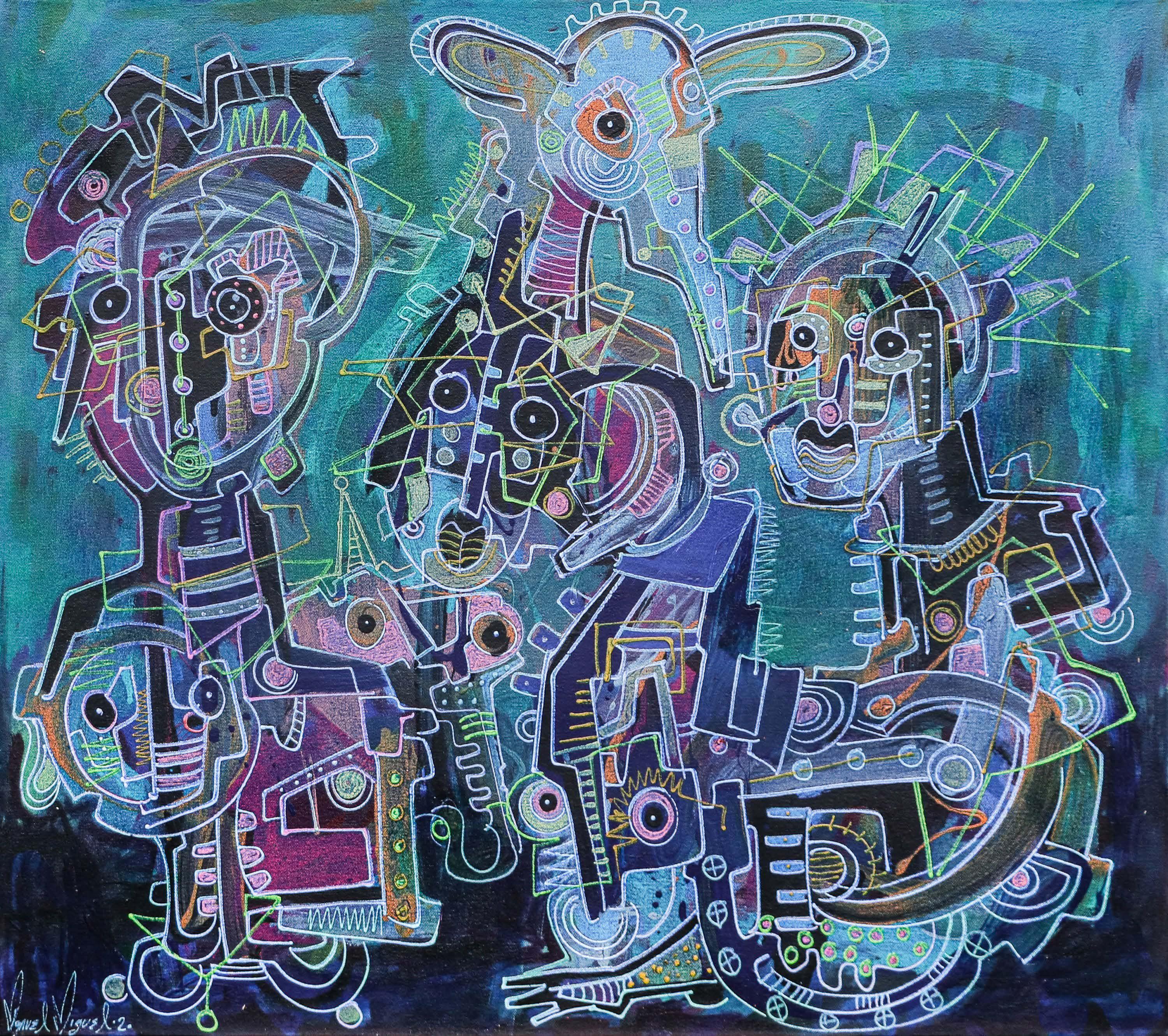 Pichardo “FIESTA” Acrílico sobre lienzo firmado con certificado 75 x 100 cm (Sin marco) Galería