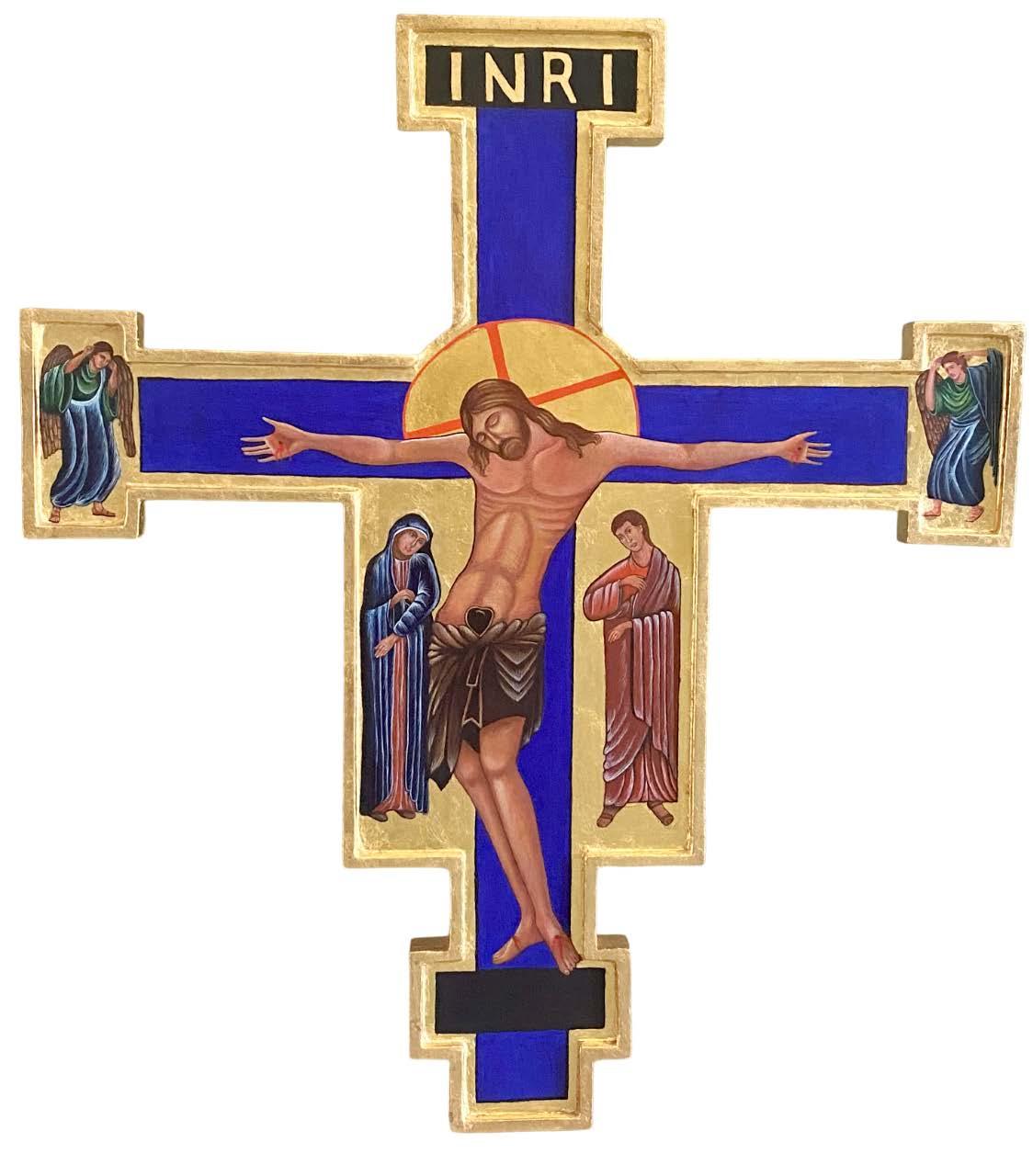 “LA CRUZ DE SAN DAMIÁN” Temple sobre cedro rojo aureola de 24 k y fondo de 18 k firmado con certificado 79.5 x 90 cm (Sin marco) Galeria San Luis Potosí “Algunas obras pueden presentar detalles de conservación, variación ligera de medidas o color”