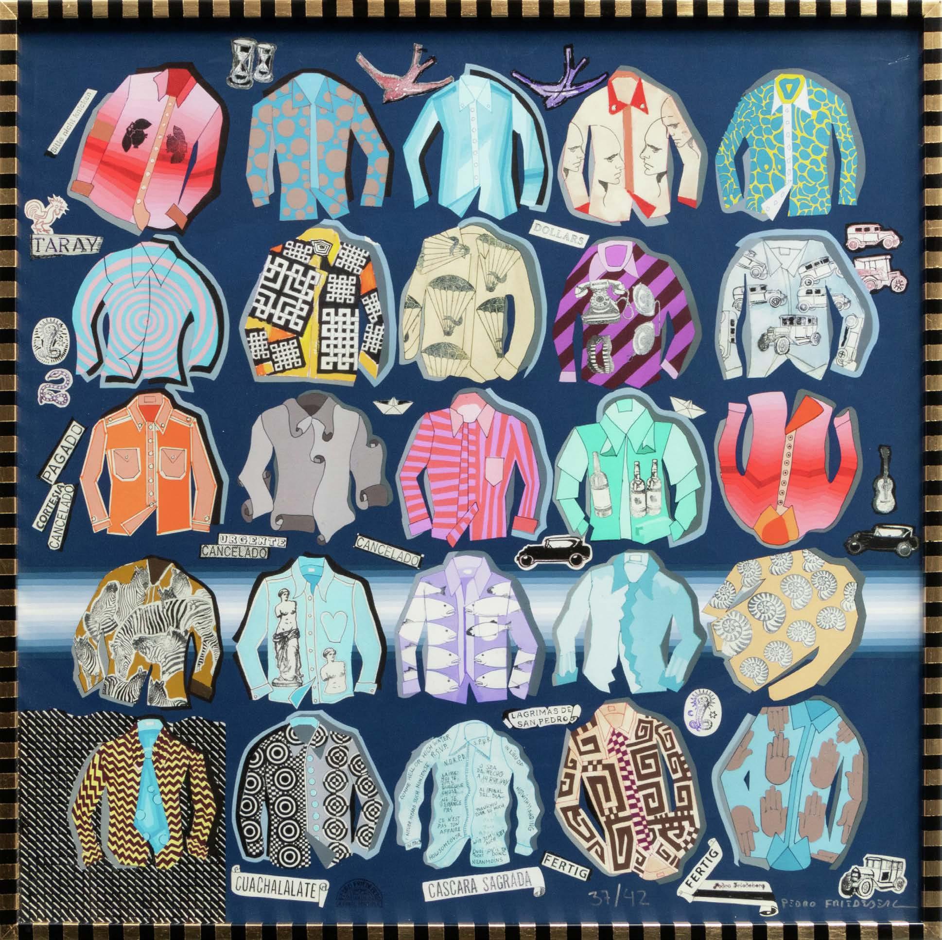 obras pueden presentar detalles de conservación, variación ligera de medidas o color” LOTE 15 Salida: $19,000 MXN Estimado: $50,000 MXN Pedro Friedeberg “CAMISAS” Serigrafía firmada con certificado 76 x 77 cm (Con marco) Galería