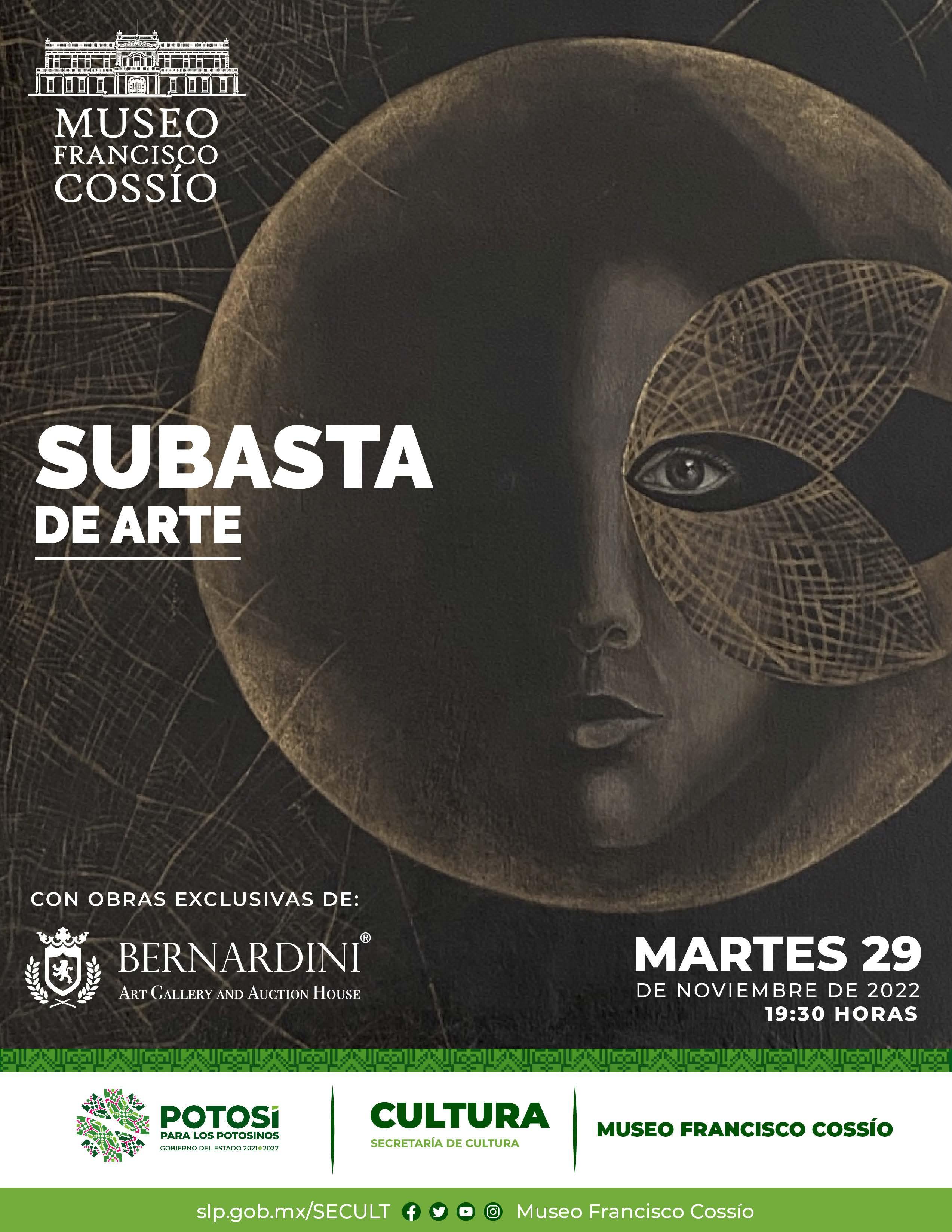 • La subasta ser llevará a cabo de manera presencial en las instalaciones del Museo Francisco Cossío, dando inicio a las 7:30 hrs. del día martes 29 de Noviembre de 2022.