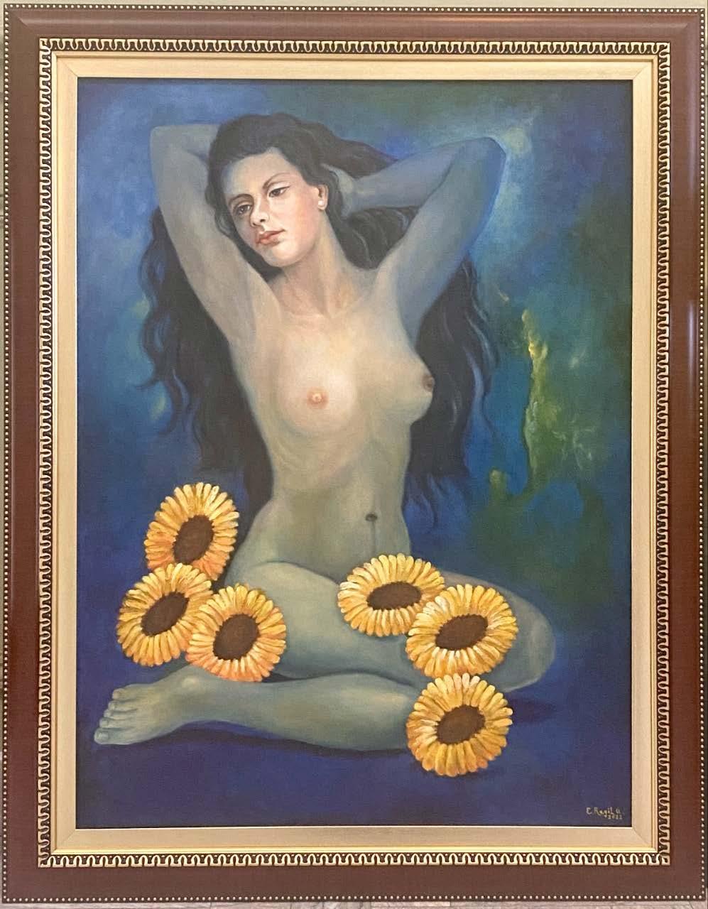 Edgardo Regil “GIRASOLES” Óleo sobre tela firmado con
