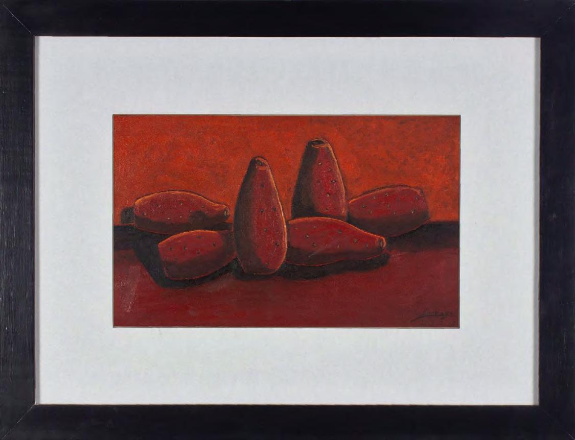 “Algunas obras pueden presentar detalles de conservación, variación ligera de medidas o color” LOTE 312 Salida: $3,000 MXN Estimado: $12,000 MXN Bernardo Ángeles Santiago “TUNAS” Óleo sobre papel firmado con certificado 55 x 72 cm (con marco) Galería Querétaro