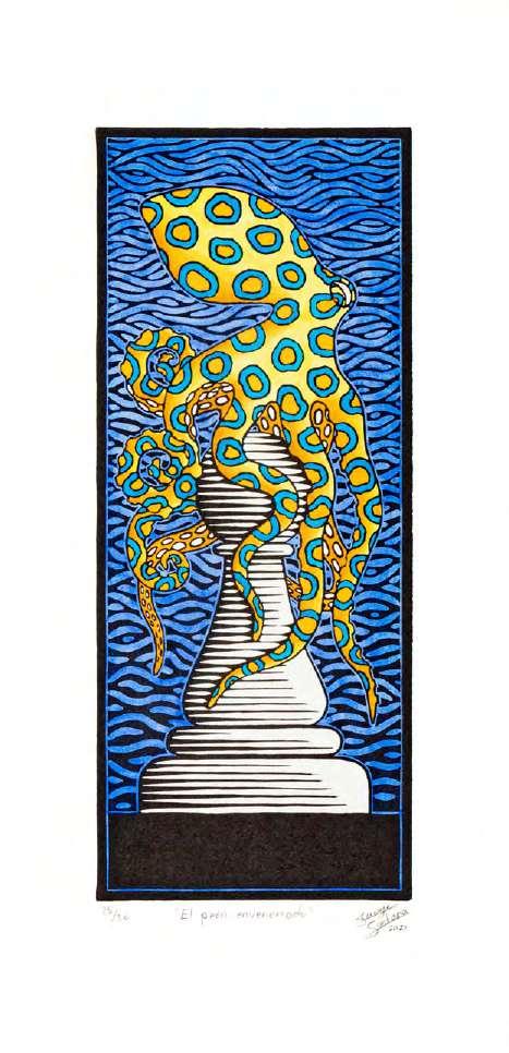 “Algunas obras pueden presentar detalles de conservación, variación ligera de medidas o color” LOTE 14 Salida: $1,000 MXN Estimado: $4,000 MXN Jorge Santana “QUETZALCÓATL” Linograbado, acuarela sobre papel firmada y numerada con certificado de artista 17 x 36 cm (sin marco) Galería Querétaro
