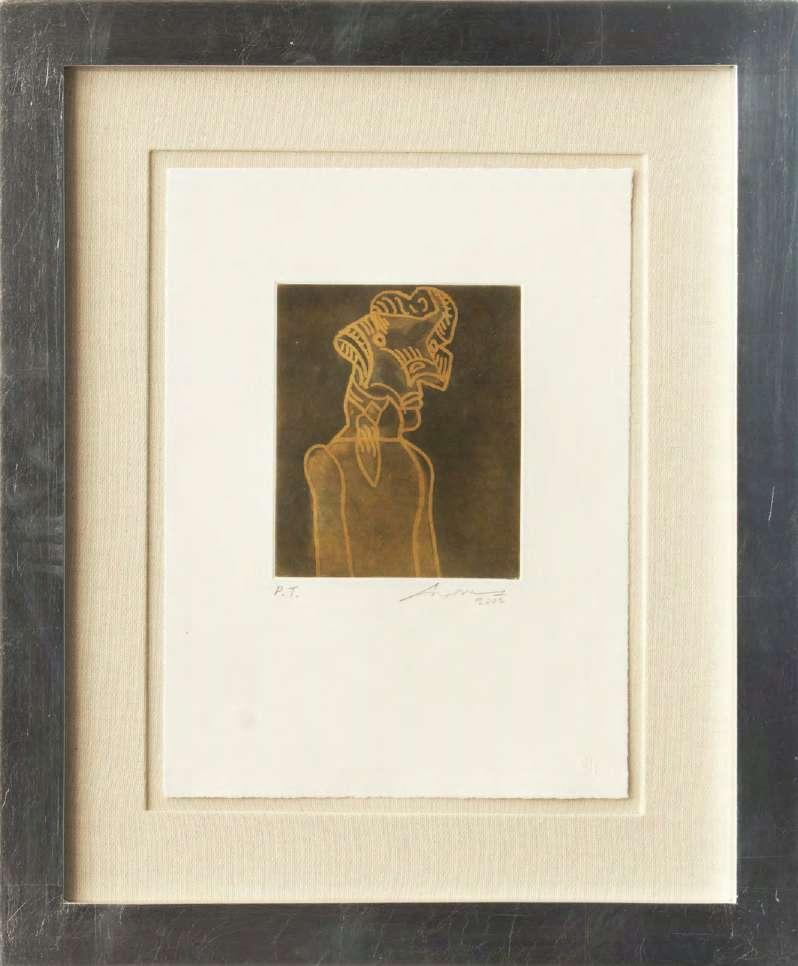“Algunas obras pueden presentar detalles de conservación, variación ligera de medidas o color” LOTE 362 Salida: $24,000 MXN Estimado: $70,000 MXN Joan Miró “ESCULTOR DENMARK (1974)” Litografía firmada con certificado 55 x 75 cm (con marco) Galería Querétaro