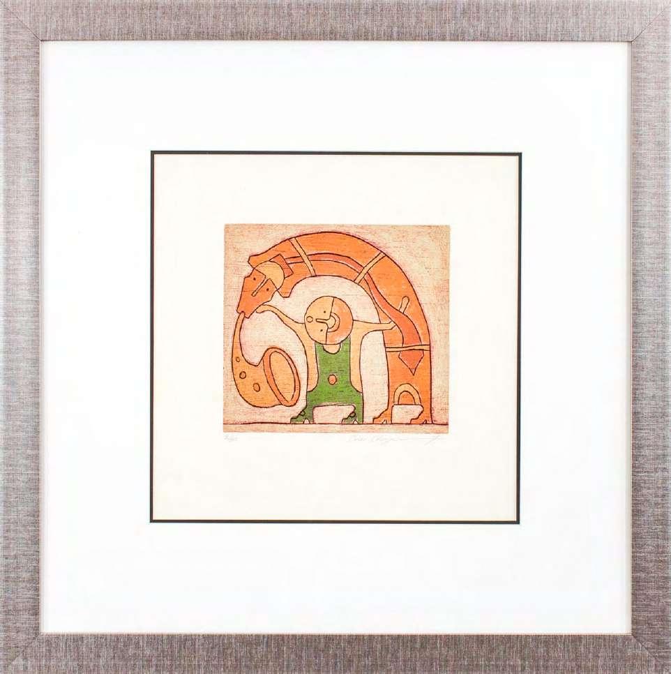 “Algunas obras pueden presentar detalles de conservación, variación ligera de medidas o color” LOTE 17 Salida: $1,000 MXN Estimado: $5,000 MXN Jorge Santana “CABALLO” Linograbado firmado y numerado con certificado de artista 18 x 17 cm (sin marco) Galería Querétaro