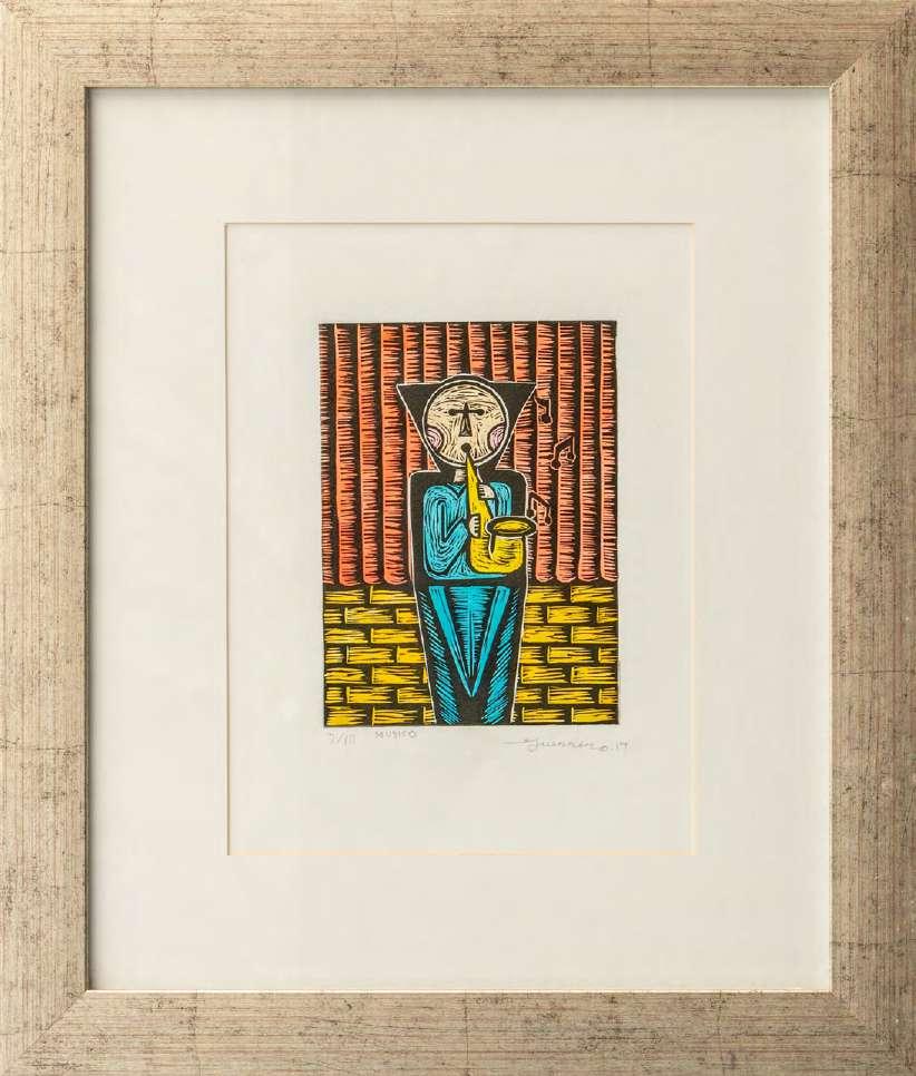“Algunas obras pueden presentar detalles de conservación, variación ligera de medidas o color” LOTE 349 Salida: $14,000 MXN Estimado: $30,000 MXN Rolando Rojas “PUENTE MÚSICAL” Grabado firmado con certificado 71 x 71 cm (con marco) Galería Querétaro