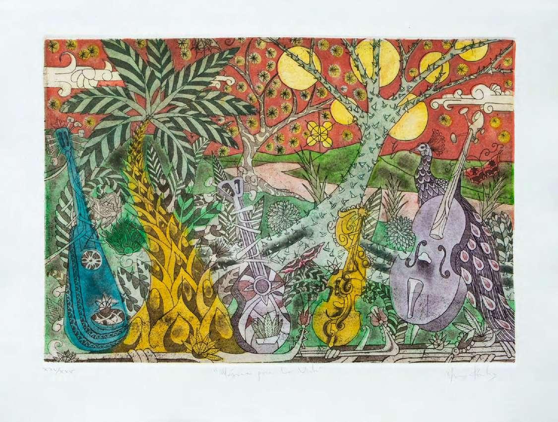 “Algunas obras pueden presentar detalles de conservación, variación ligera de medidas o color” LOTE 18 Salida: $4,000 MXN Estimado: $10,000 MXN Marcos Sánchez “PARAJE” Grabado, firmado y numerado con certificado 54 x 79 cm (sin marco) Galería Querétaro