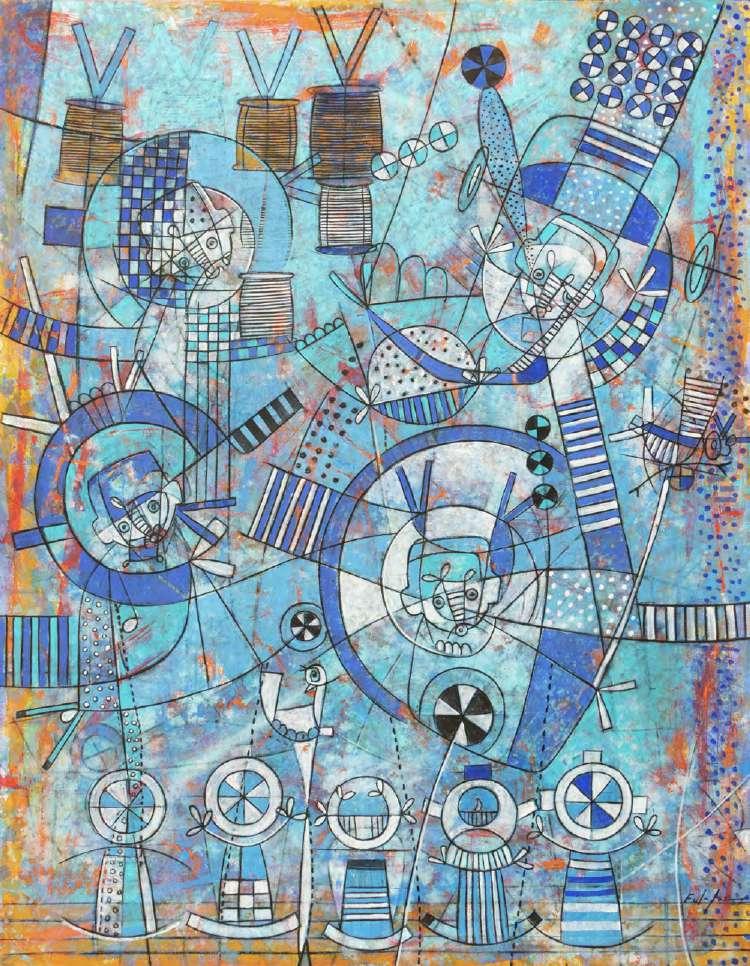 “Algunas obras pueden presentar detalles de conservación, variación ligera de medidas o color” LOTE 32 Salida: $67,000 MXN Estimado: $100,000 MXN Fulgencio Lazo “TELARES FAMILIARES” Acrílico sobre lienzo firmado con certificado 60 x 180 cm (sin marco) Galería Querétaro