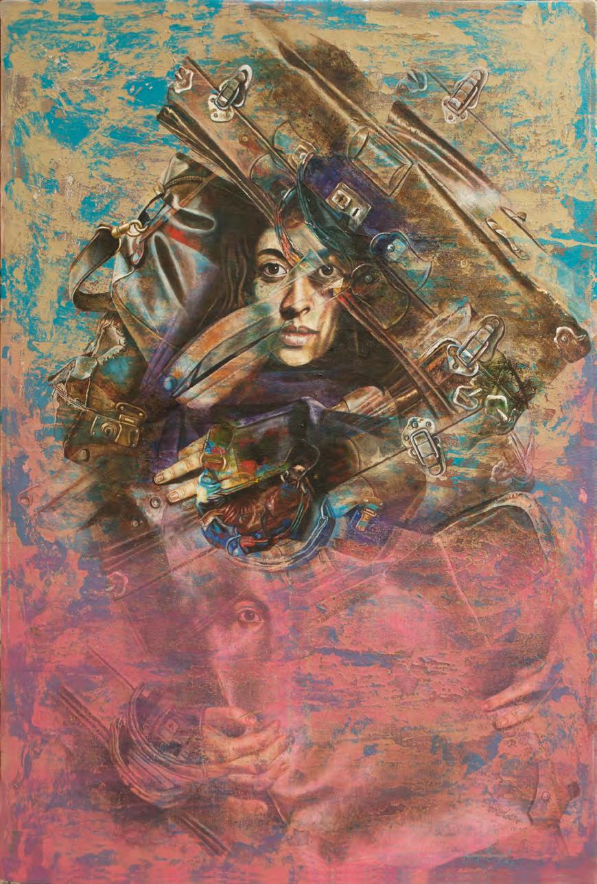 Xilografía y serigrafía con aplicaciones de hoja de oro y plata, firmado y numerado con certificado 80 x 121 cm (sin marco) Colección privada