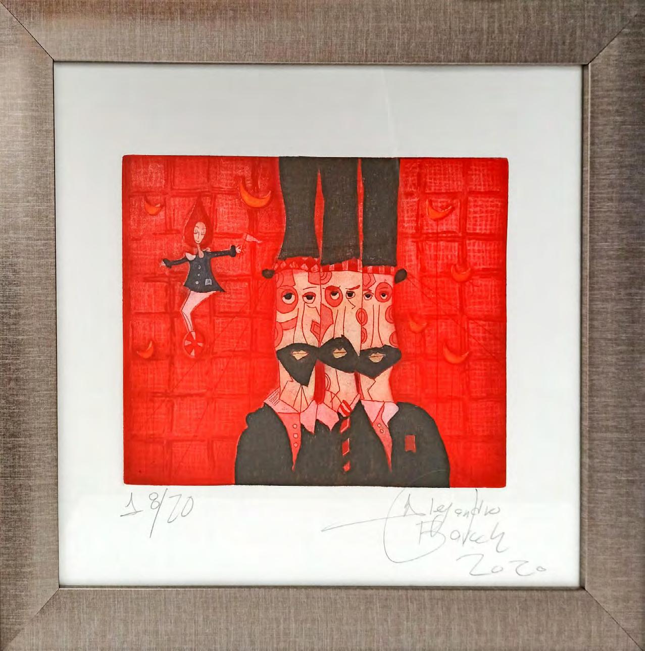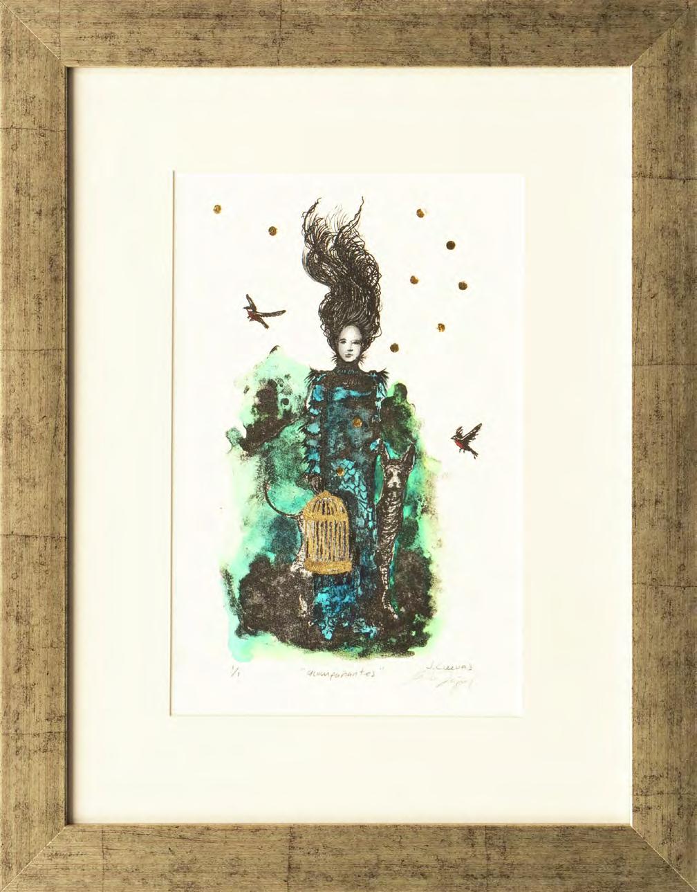 Grabado con aplicaciones de hoja metálica firmado y numerado con certificado 80 x 99 cm (sin marco) Colección privada