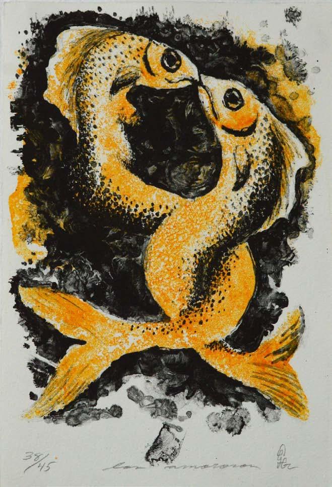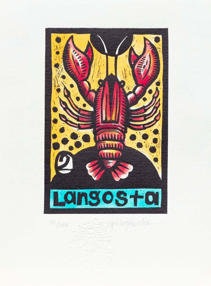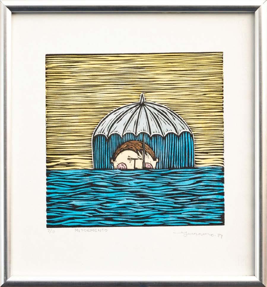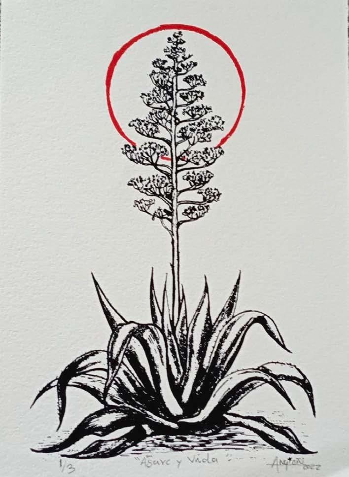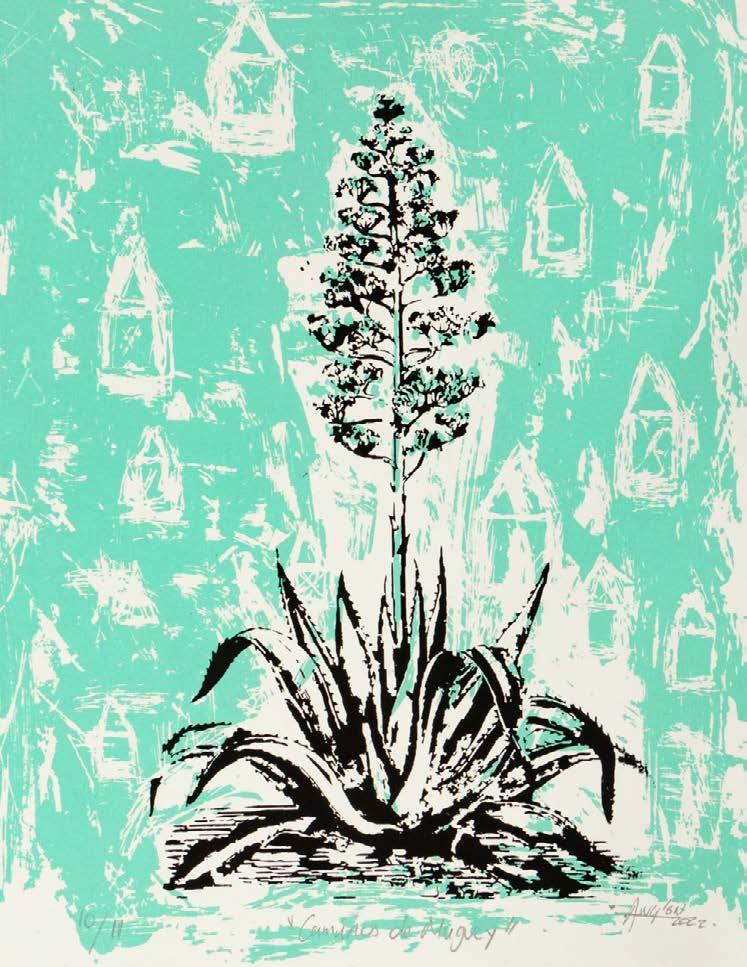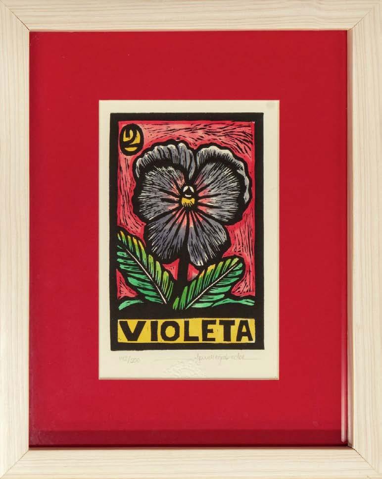Linoleo y acuarela sobre papel firmado y numerado 15 x 12 cm (sin marco) Galería Querétaro