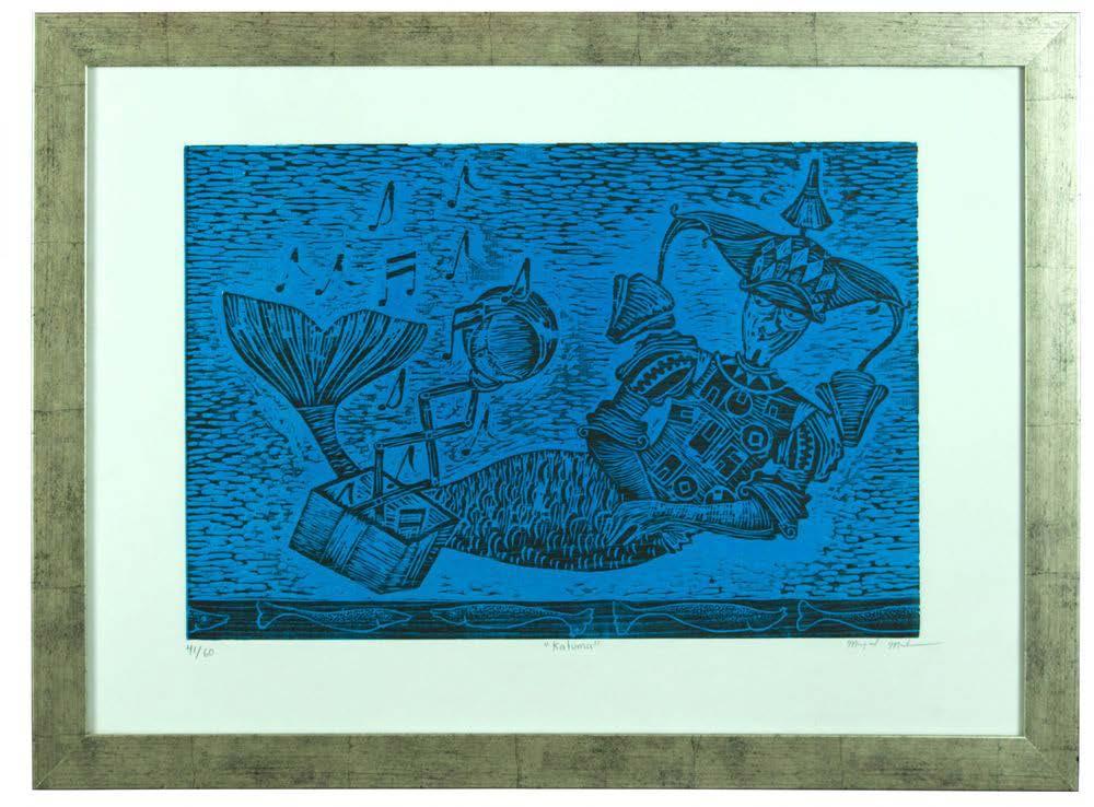 Linóleo y acuarela firmado con certificado 44 x 34 cm (con marco) Galería Querétaro