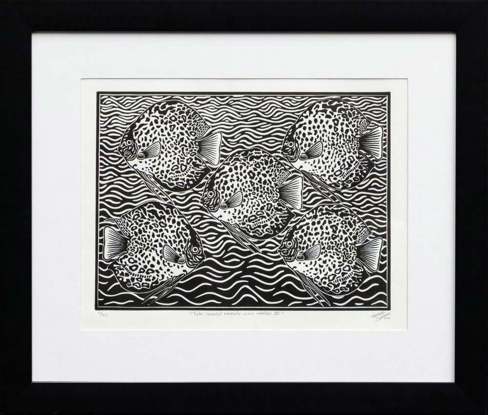 Linóleo y acuarela firmado con certificado 31 x 25 cm (con marco) Galería Querétaro