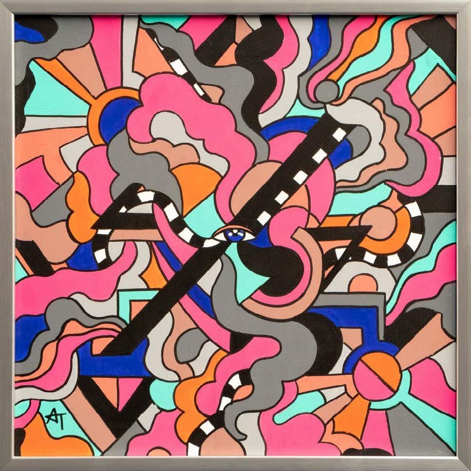 “FUSIÓN ABSTRACTA TRIBUTO A FRIDA” Acrílico sobre lienzo firmado con certificado 35 x 35 cm (sin marco)