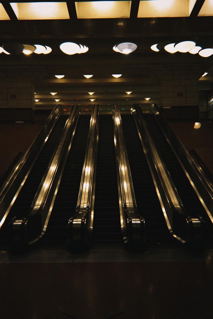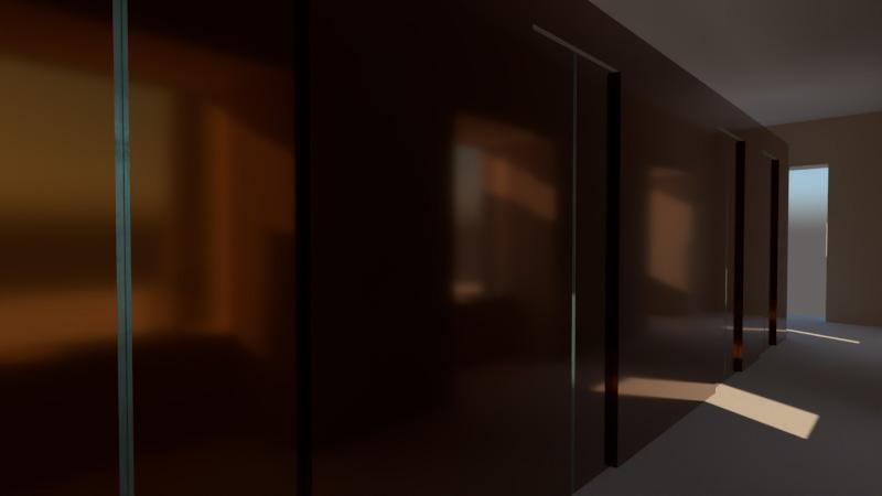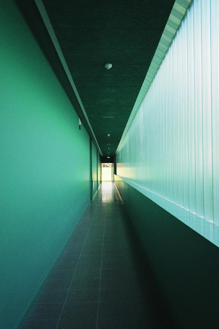 Passando do patamar de observação, entramos no corredor que nos levará a Vieira da Silva. Após percorrermos este corredor e apreciarmos os reflexos da água trazidos por uma clarabóia, unindo este escuro corredor com o espelho de àgua acima, passamos a um corredor mais estreito que revela aos poucos, devido à diminuta luz do espaço, a obra de Vieira da Silva.