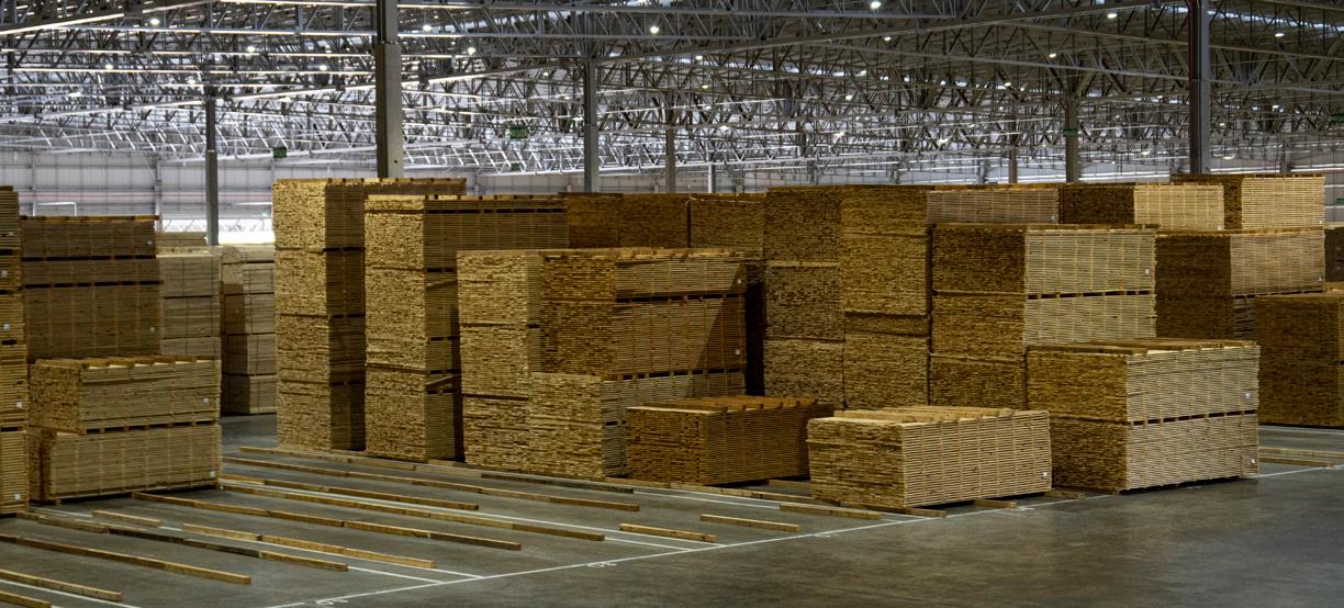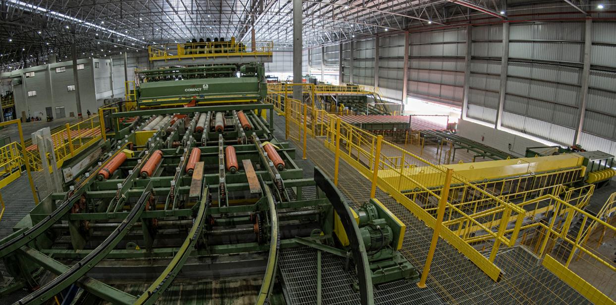 O galpão de remanufatura tem 35 mil m² e armazena toda a produção de serrados da fábrica.
