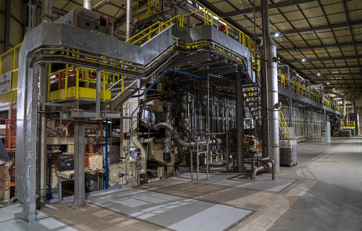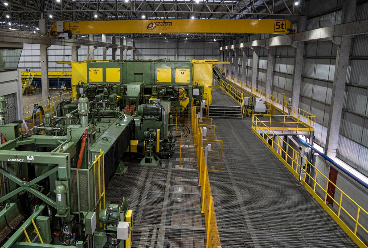 Área de acabamento, onde a chapa é calibrada e cortada nas dimensões finais para o cliente.
