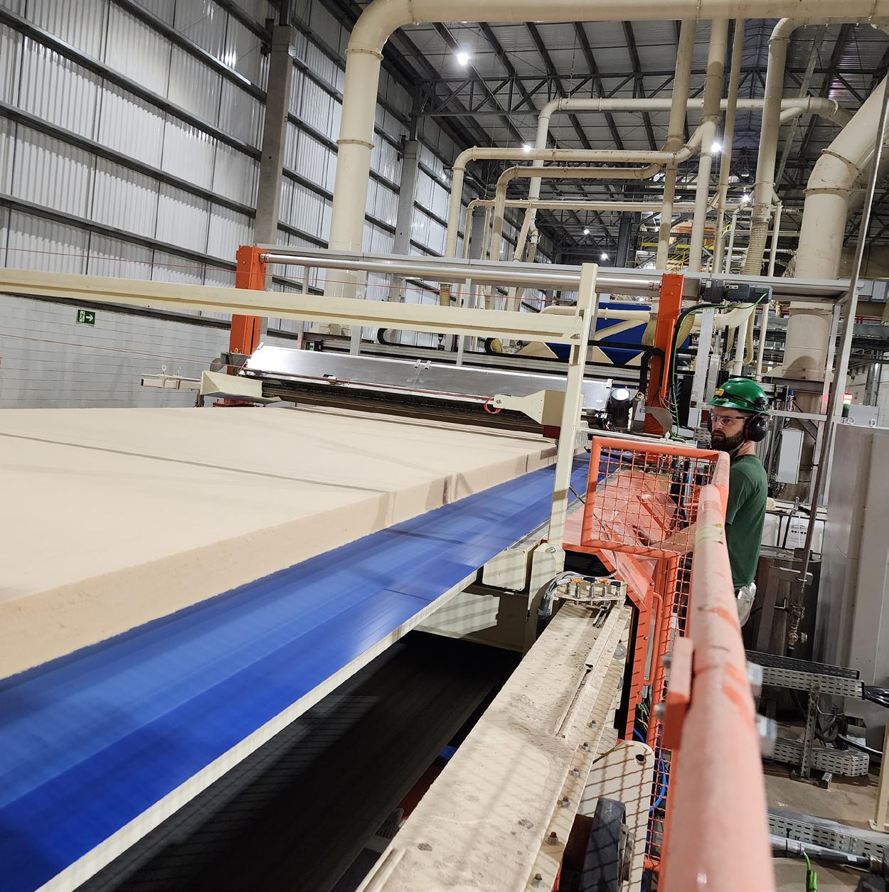 Na prensa, o MDF começa a se formar em um processo altamente preciso e contínuo.