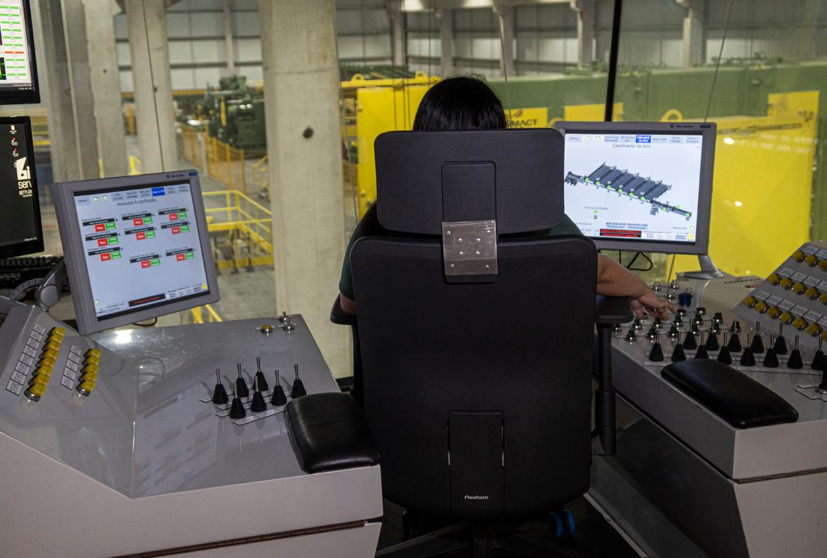 Na sala de controle é possível realizar um verdadeiro “raio x” de cada tora.