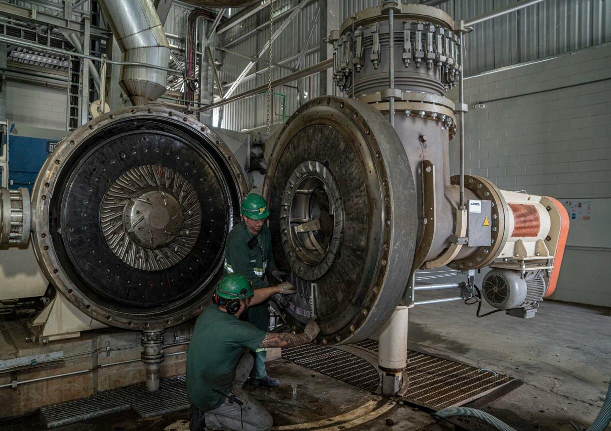 Assim como o refinador (foto), todos os equipamentos recebem manutenção constante por uma equipe altamente especializada. Para garantir o melhor funcionamento das máquinas.