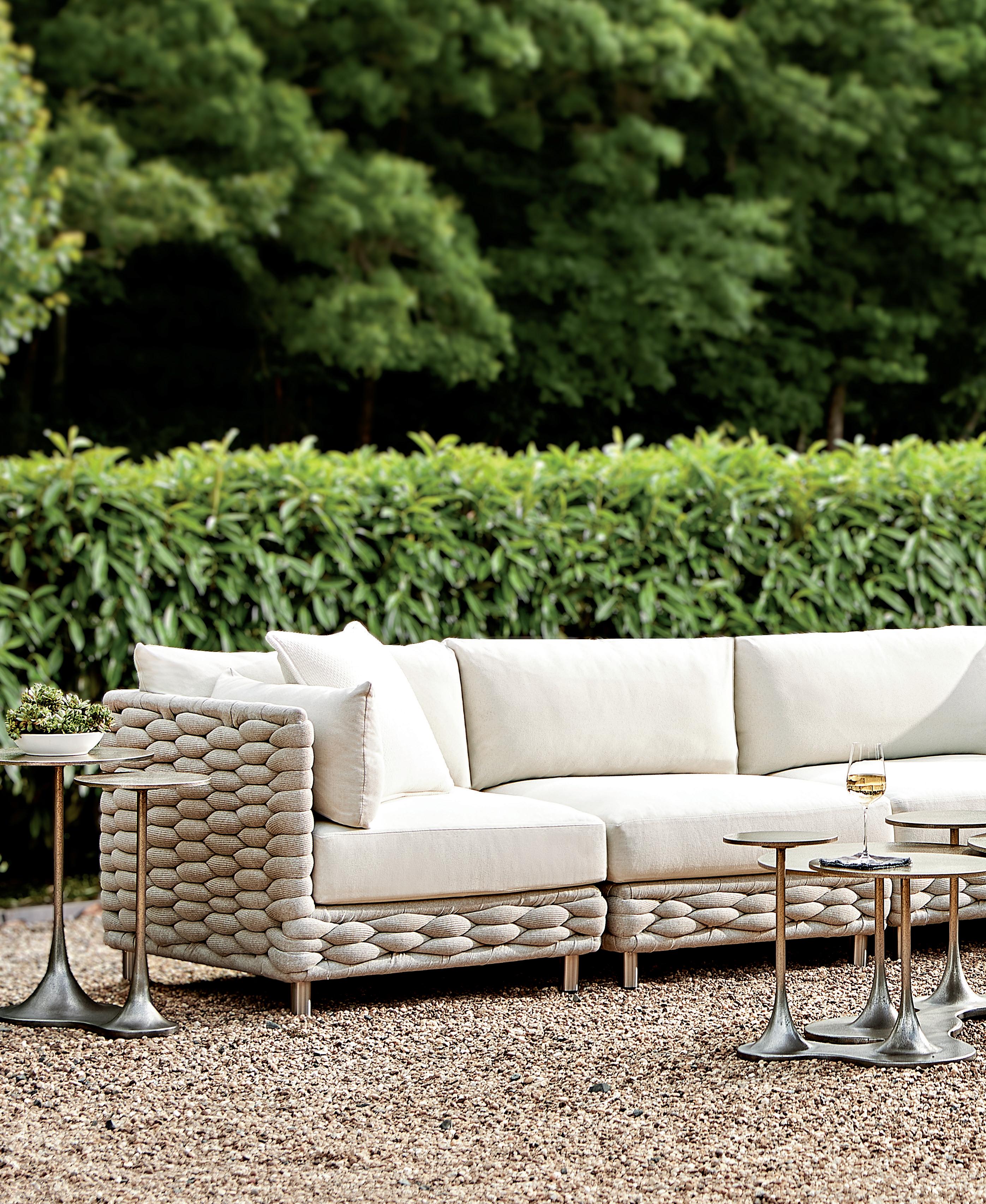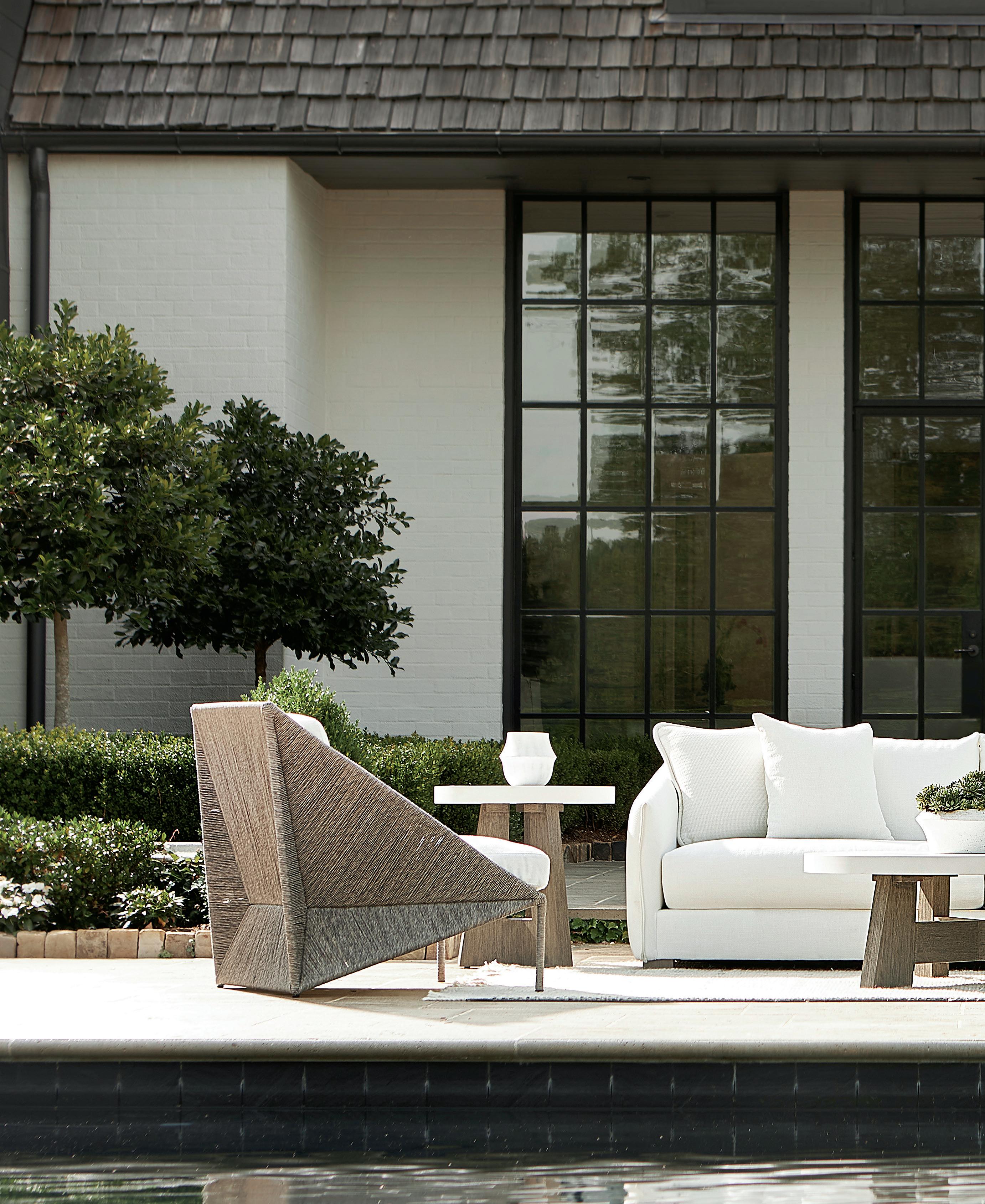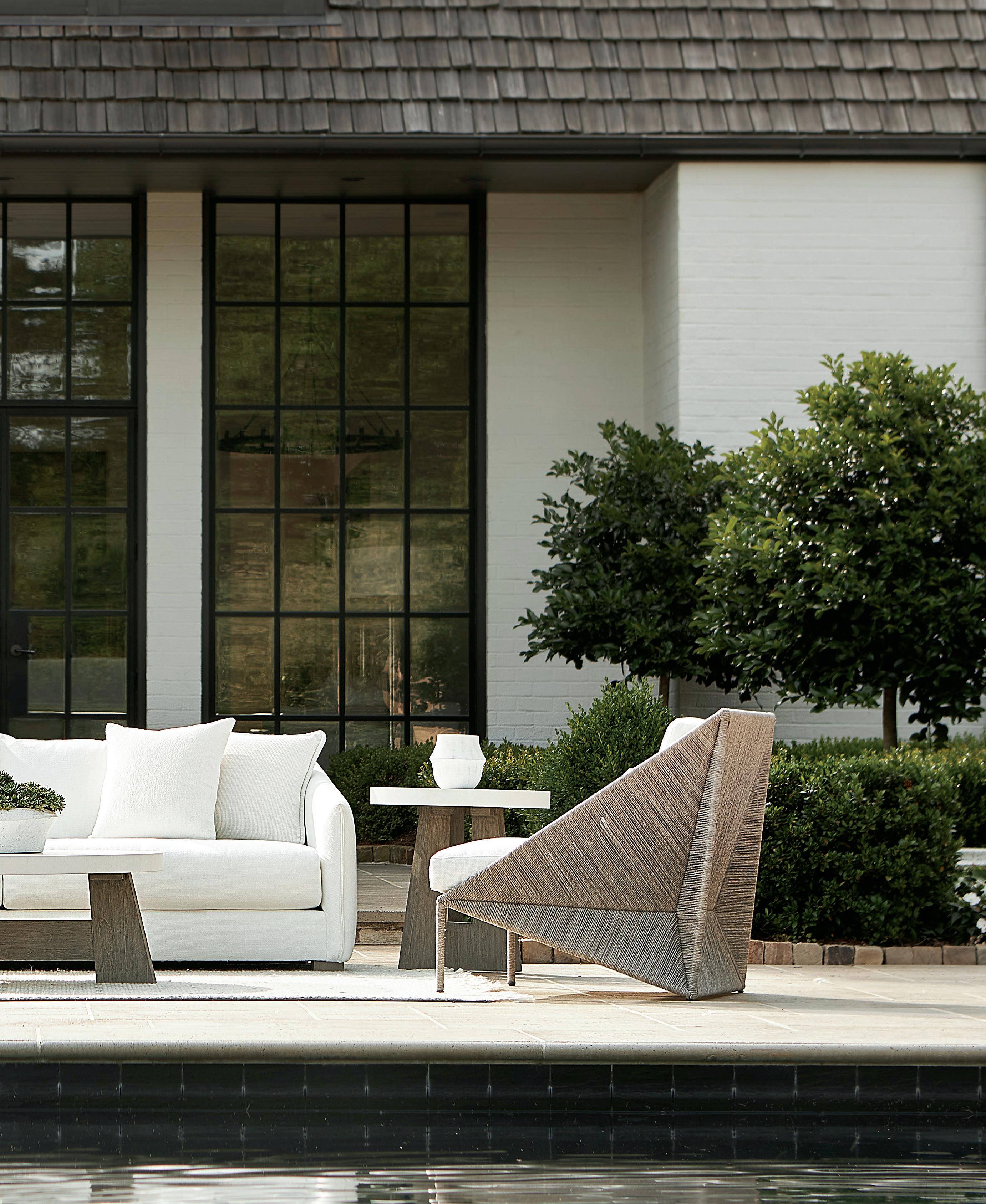 Bernhardt Hospitality offers a range of luxury outdoor furnishings including seating, dining, accent tables and custom pillows. Characterized by a high level of design and an elevated aesthetic, the collection is created in uniquely beautiful materials with a curated look that feels polished and new. Each all-weather piece can be used in a full outdoor space. Evolving and intentionally eclectic, the Bernhardt Hospitality outdoor collection breathes fresh air into exterior furnishings with a stylish, sophisticated approach to outdoor living.