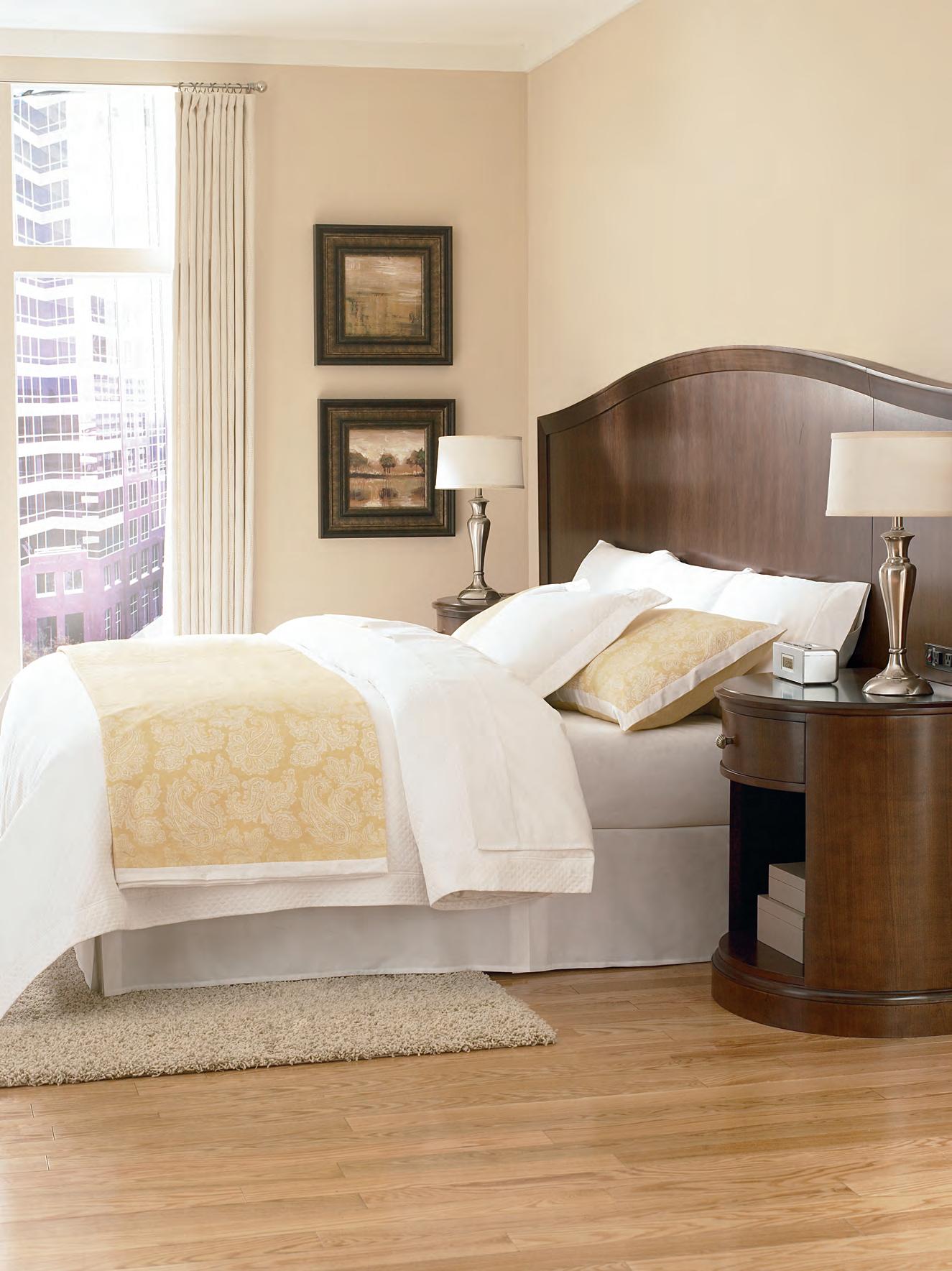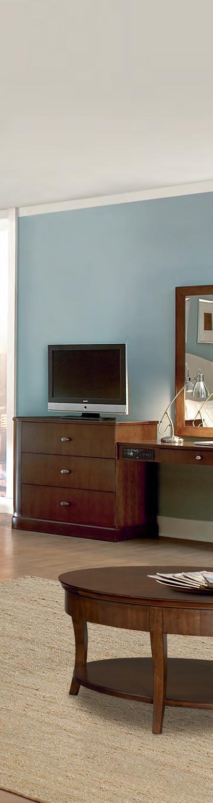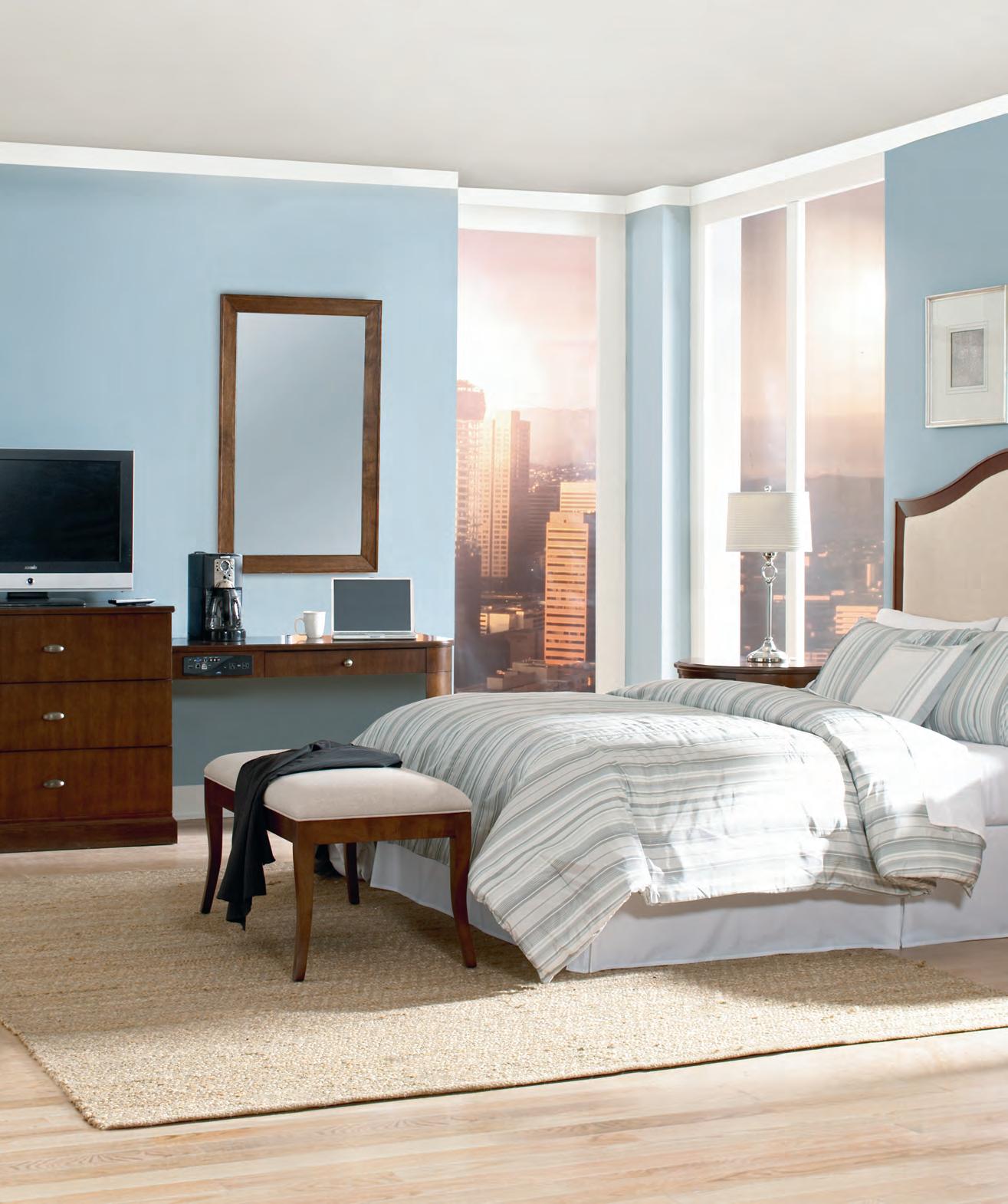 Feelingathomewhentravelingjust goteasierwithBerkshire—a BernhardtHospitalityCollection. Sleek,cleanlinesandsoftcurves givethiscoordinatedbedroom andoccasionalcollectiona sophisticatedyetcomfortable lookthatelevatesanyroom.