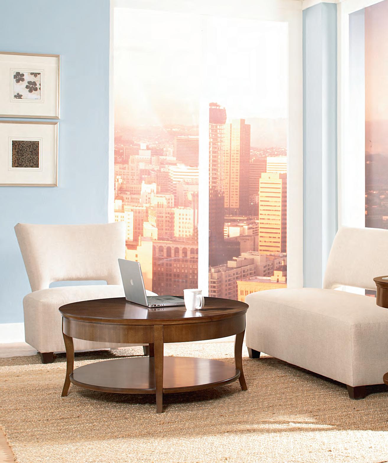 Thistwo-tieredroundcocktailtableandcoordinatingside tablecomplementtheofferingsintheBerkshireCollection andalsoworkwellwithafull-rangeofupholsteredseating fromBernhardtSolutions.