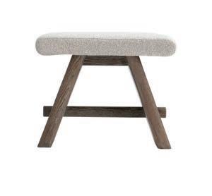 Upholstered seat. "A" shaped ends to the floor, with a large dowel stretcher visible on end panels. Small white glides. Playa finish. Also available in other fabrics excluding leathers, silks and pillow fabrics; order as 317X06.