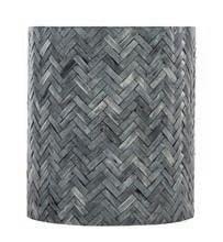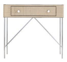 Materials/Finishes: Wrapped woven bleached raffia case. Polished stainless steel top and leg frames.