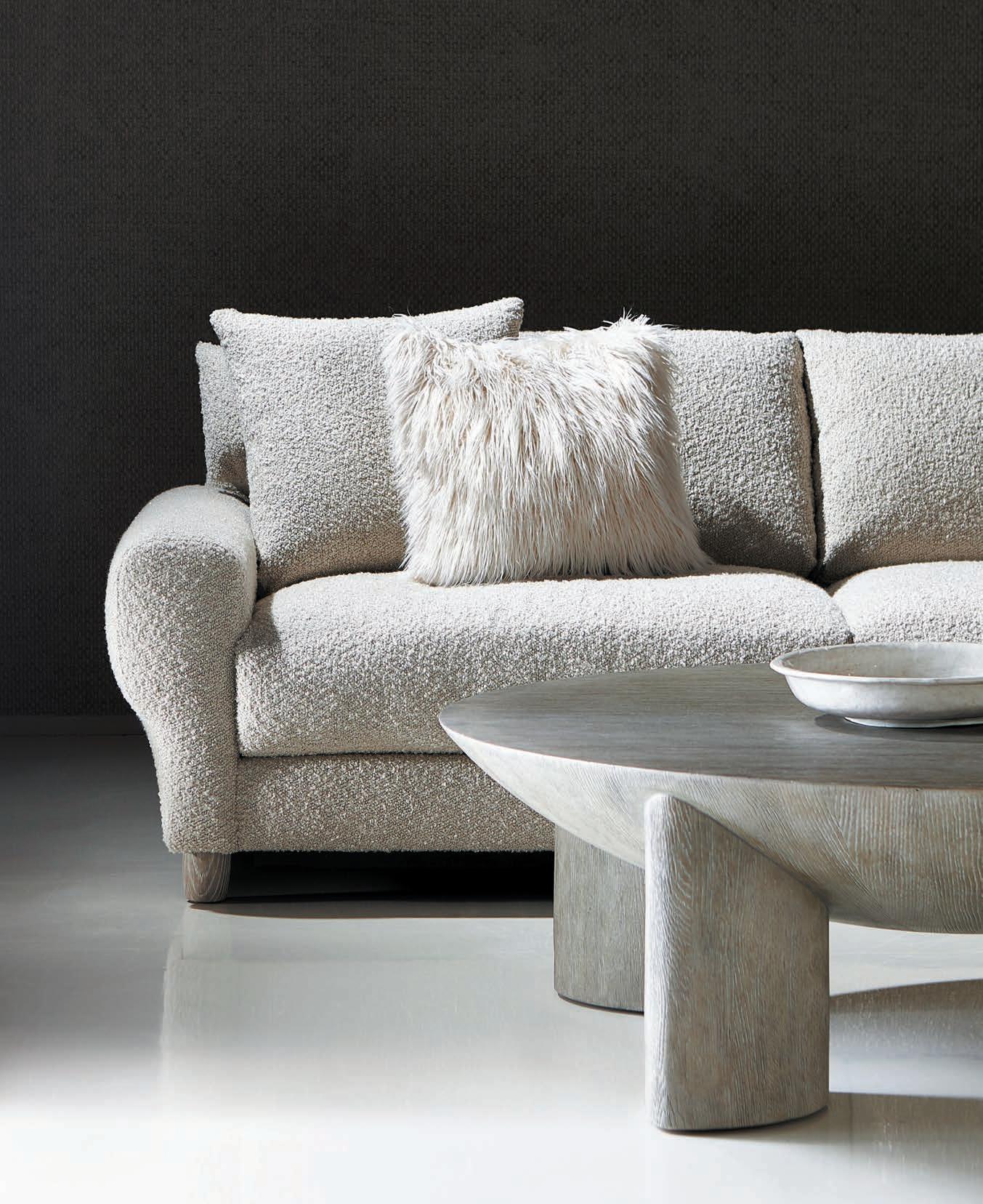 PAGES 15: N7777 Peyton Sofa (Body Fabric 1159-020, Pillows 1159-020, 7105-002), 309015 Renzo Cocktail Table.