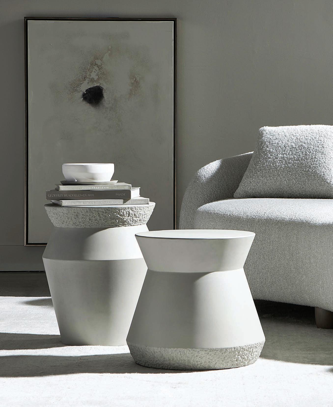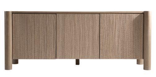 Materials/Finishes: Oak case in Flaxen finish. Drawers with Vellum finished fronts. Sand Grey finish on the two concrete textured bases.