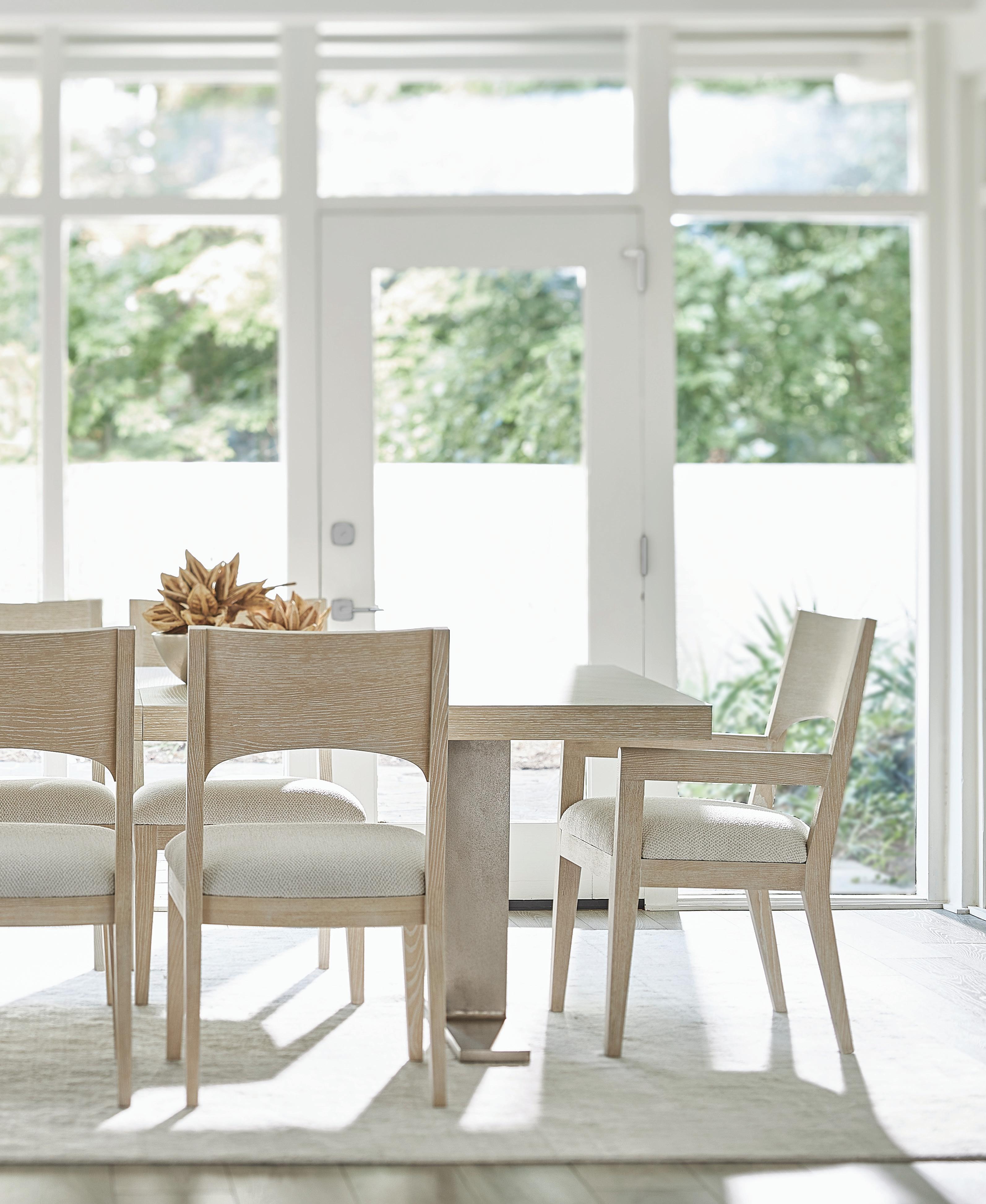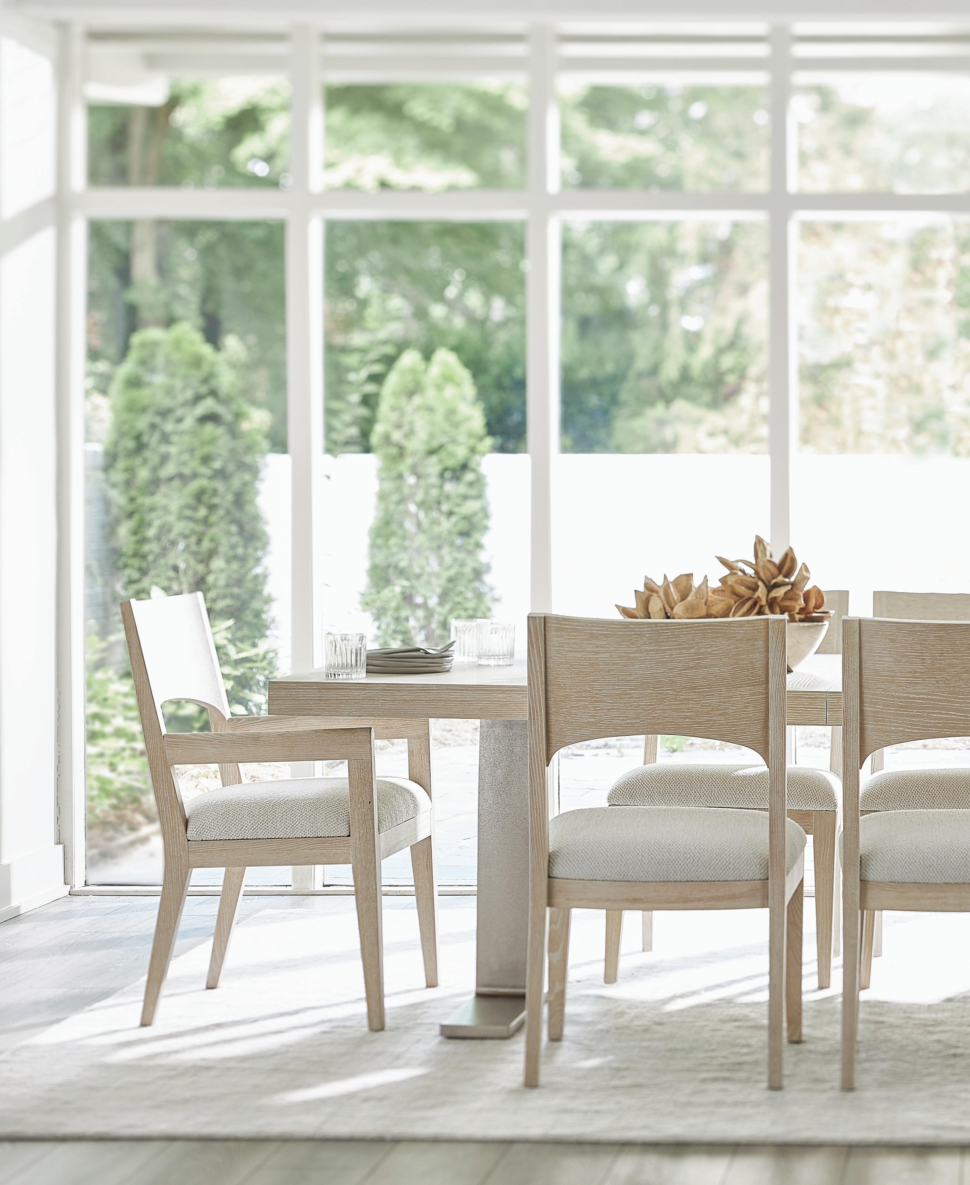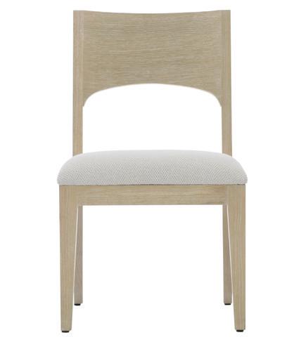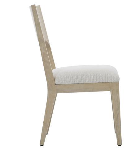 Quartered ash solids. Arched back in quartered white oak veneers in Dune finish. Upholstered slip seat (no welt). Glides.