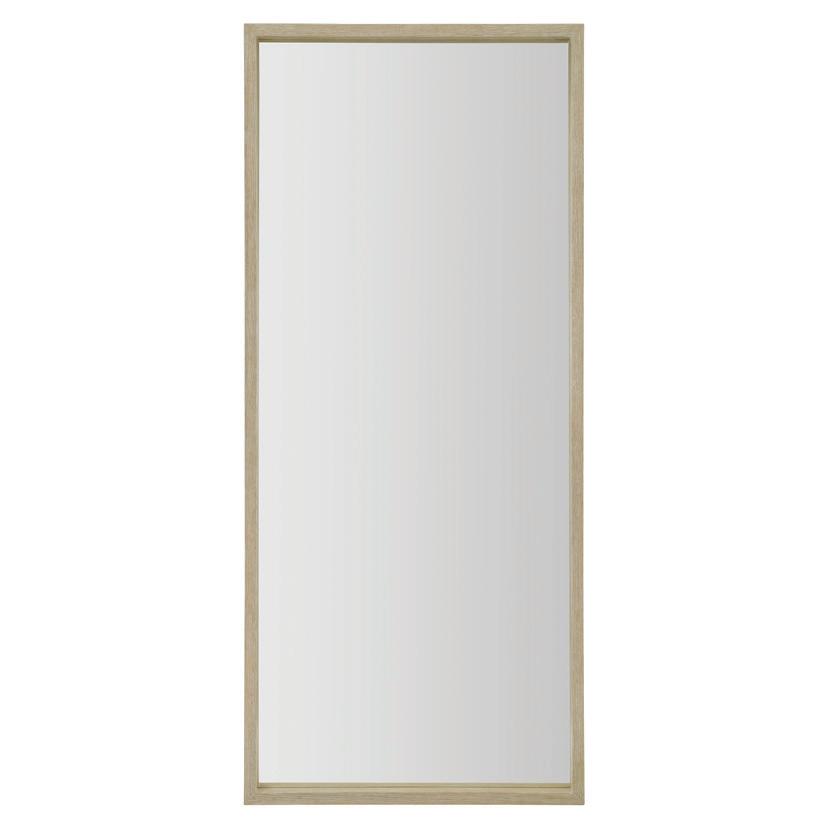 Wood frame with inset, non-beveled mirrored glass. Anti-tip kit. Dune finish.
