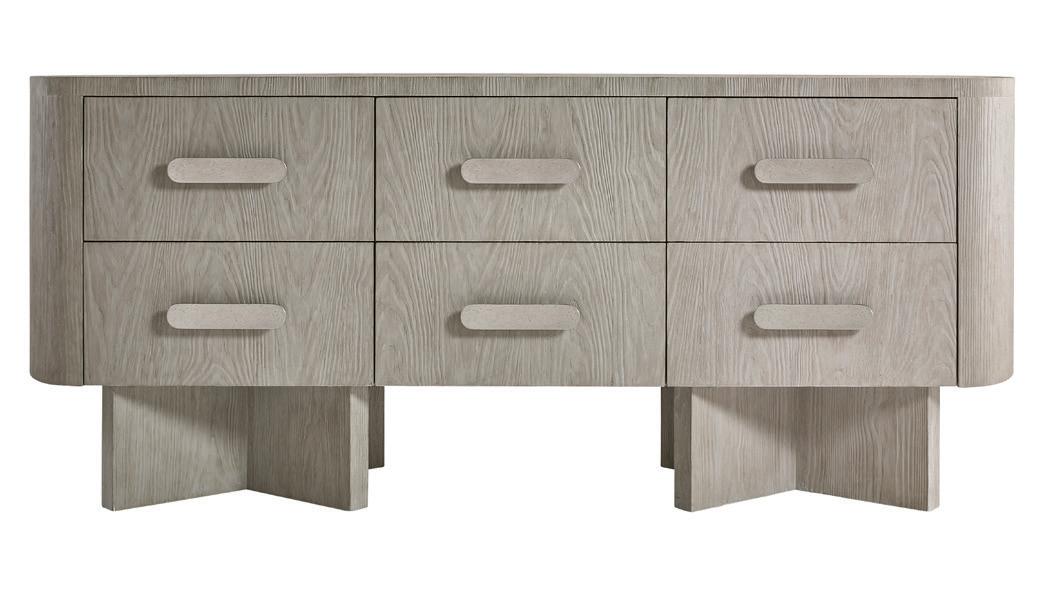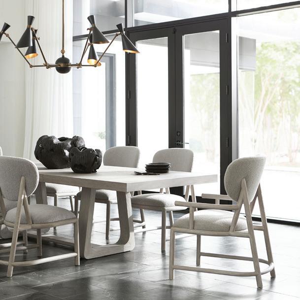 Minimalist in nature with an elevated design aesthetic, Trianon explores the elemental relationship between space, form and material. Clean lines highlight precise curves and perfectly balanced proportions. Open spaces create a sense of lightness within bold structure. Natural, organic textures give the collection a sophisticated earthiness with the tactile richness of wire-brushed pine, chiseled stone and rustic cast aluminum. Hints of multicultural influences blend with refined modernism for a look that feels inspired, curated and worldly.