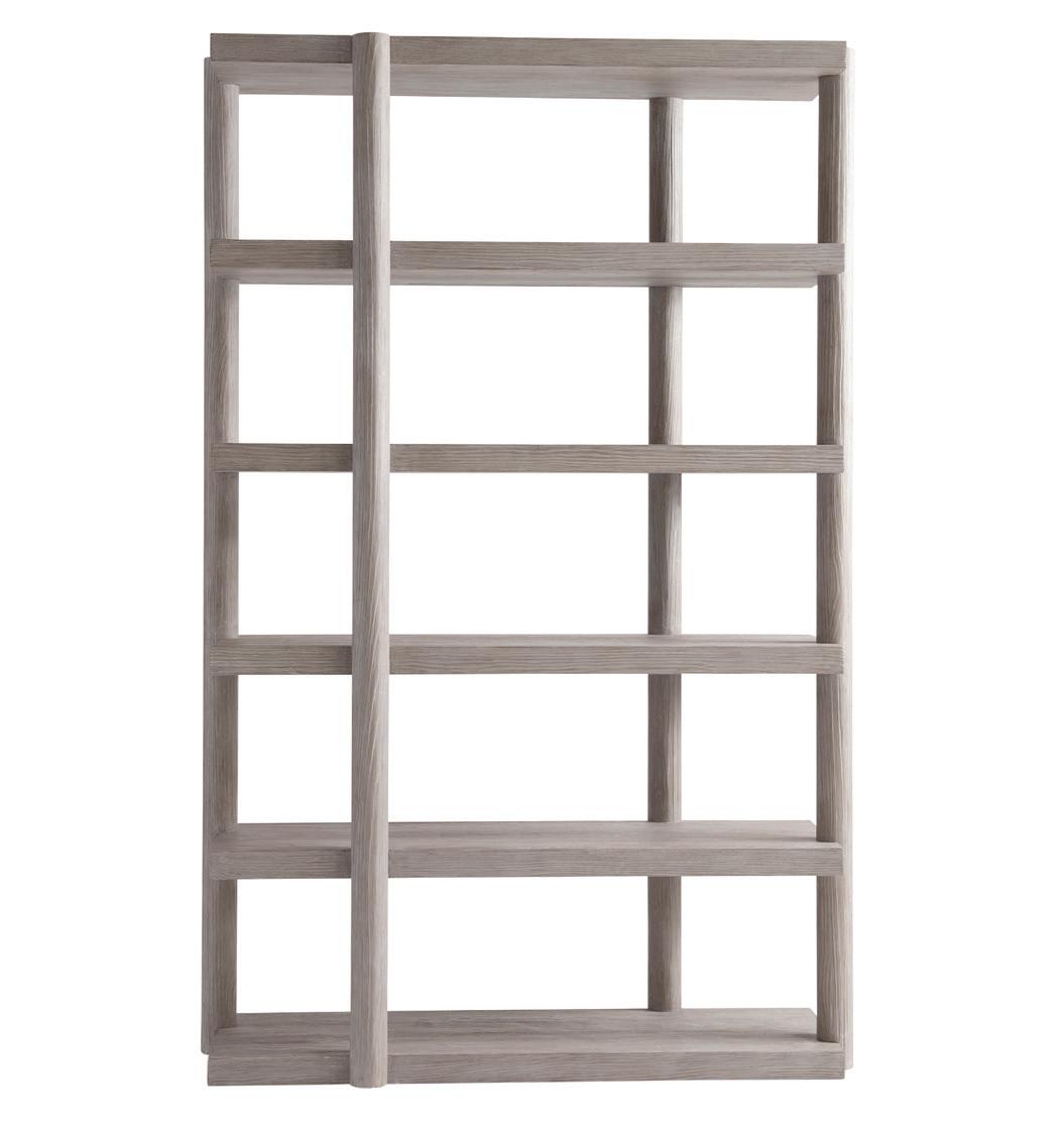 Finished top and five open fixed shelves including the bottom. Anti-tip kit. Gris finish. Note: Not designed to support TV and/or other media.