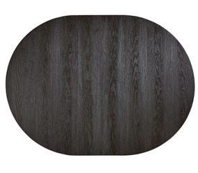 Wood top and three legs with vertical cutout where legs meet at center. L'Ombre finish.