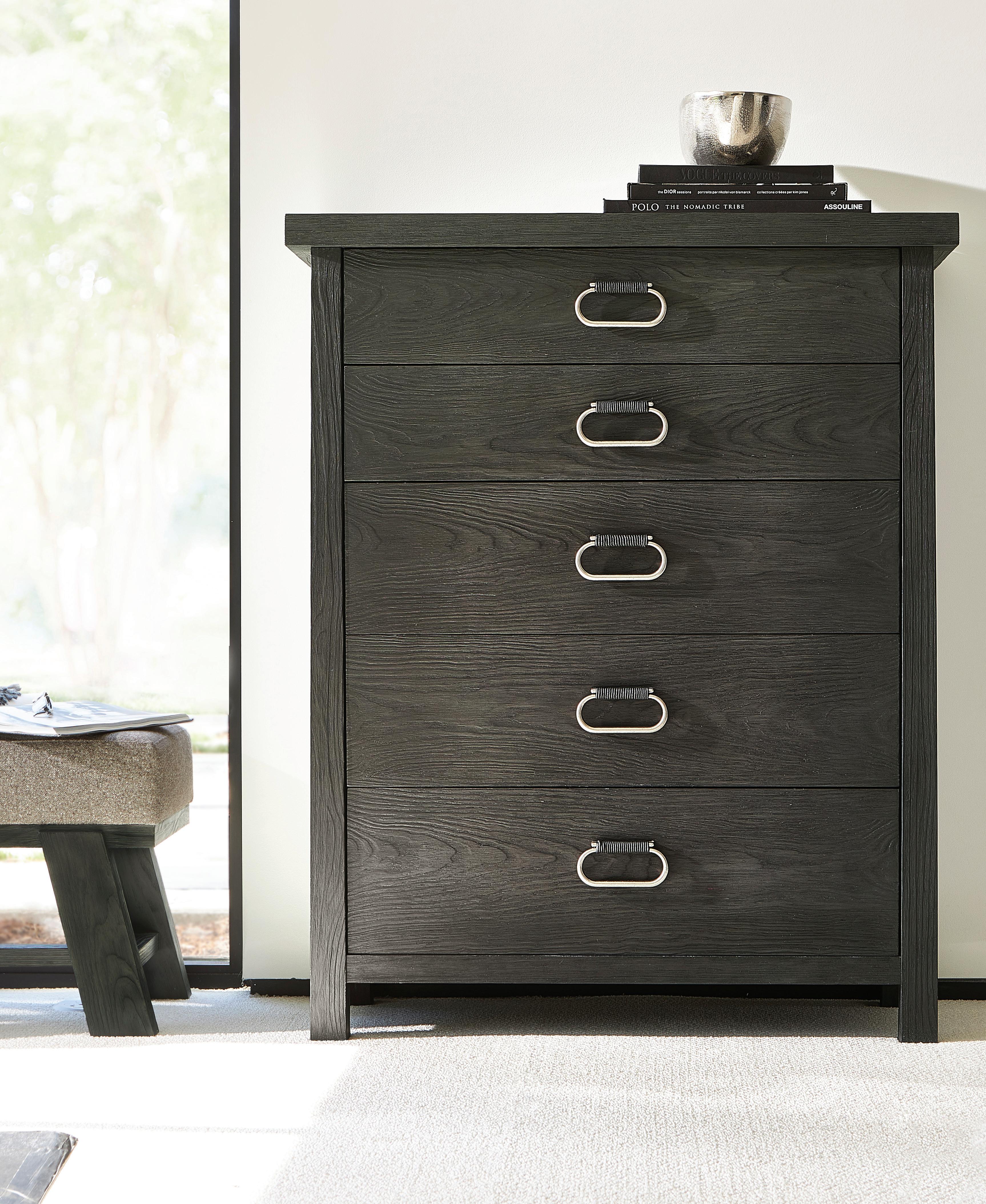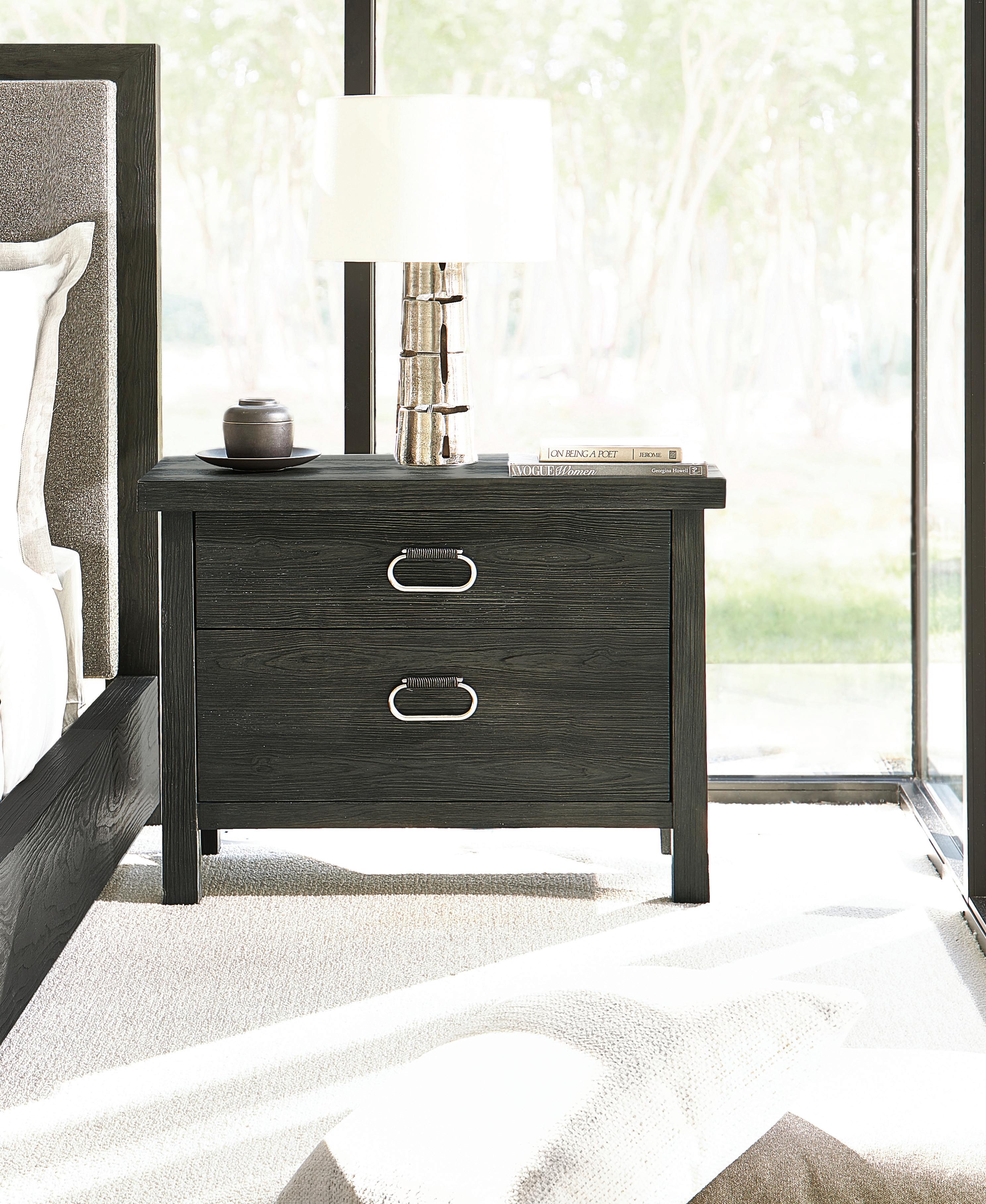 textiles include textural fabrics in soft grey and rich charcoal with a matte finish.